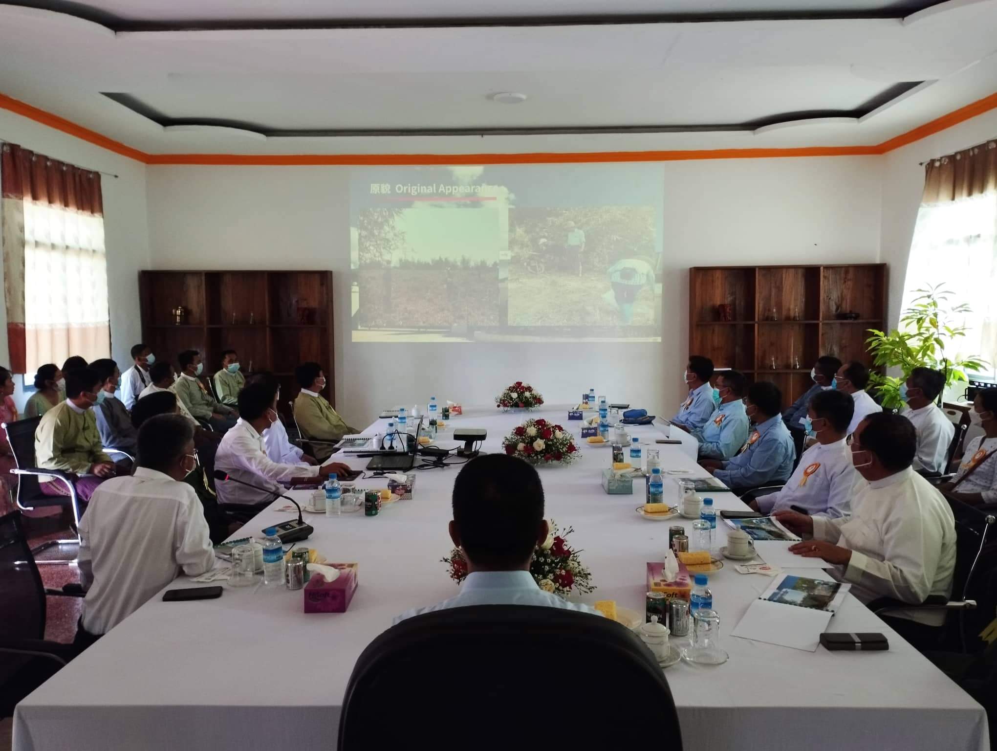 ယင်းနောက် ဧရာဝတီတိုင်းဒေသကြီးအစိုးရအဖွဲ့ ဝန်ကြီးချုပ်က  ဧရာဝတီတိုင်း ဒေသကြီးတွင် နွေစပါးမိုးစပါးဧက ငါးသန်းကျော်ရှိ၍ စပါးတင်းသိန်းပေါင်း လေးထောင် ကျော်ထွက်ရာ စပါးခွံများတောင်လိုပုံနေကြောင်း၊ ယခုစပါးခွံများကို အကျိုးရှိအောင် အသုံးချ၍ ရပြီဖြစ်ကြောင်း၊ အမှန်အသုံးချနိုင်အောင် အကောင်အထည်ဖော်နိုင်ရန်လို ကြောင်း၊ စပါးခွံသာမက မြေပဲခွံများကိုလည်း လောင်စာတောင့်အဖြစ်အသုံးချ၍ ရကြောင်းကိုသိရကြောင်း၊ MSME ကို ကိုယ့်တိုင်းဒေသကြီးတွင်ရှိသည့် ကုန်ကြမ်းများဖြင့် လုပ်မှသာ ရေရှည်ဖွံ့ဖြိုးတိုးတက်မှာဖြစ်ကြောင်း၊ မိမိတိုင်းဒေသကြီးတွင် ကုန်ကြမ်းများ စွာရှိကြောင်း၊ စပါးခွံမှ လောင်စာစွမ်းအင်ဖြင့် လျှပ်စစ်ဓာတ်အားရရှိအောင် ထုတ်နိုင် ကြောင်းသိရ၍ တိုင်းဒေသကြီးအတွင်းရှိ ကျေးရွာများ  လျှပ်စစ်လိုအပ်မှုကို ဖြည့်ဆည်း ပေးနိုင်ကြောင်း ပြောကြားသည်။