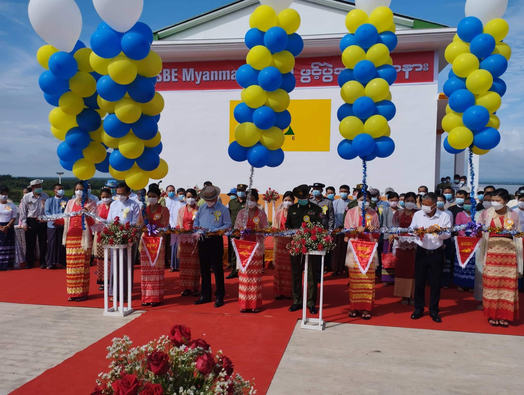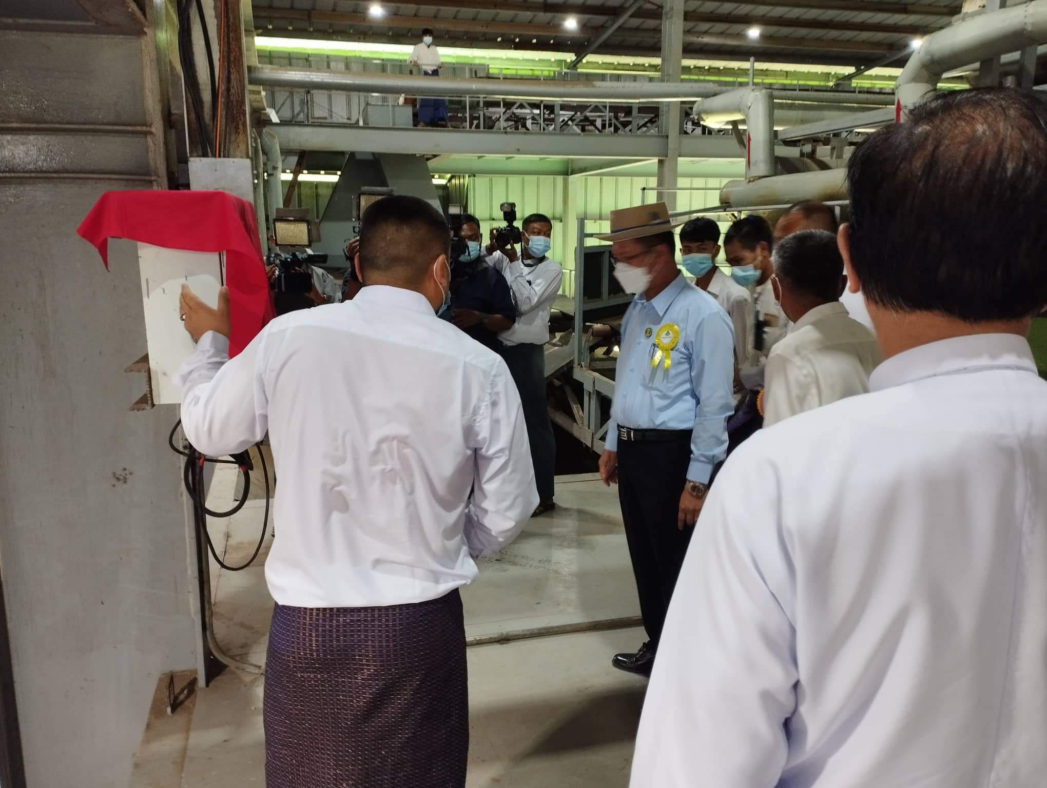 လောင်စာတောင့်စက်ရုံ ဖွင့်ပွဲအခမ်းအနားကို ဧရာဝတီတိုင်းဒေသကြီး ဝန်ကြီးချုပ် ဦးတင်မောင်ဝင်း၊ စီးပွားရေးရာဝန်ကြီး ဦးတင်အေး၊ အနောက်တောင်တိုင်းစစ်ဌာနချုပ် တိုင်းမှူး ဗိုလ်ချုပ်အောင်အောင်၊ SSBE ကုမ္ပဏီမှ မန်နေးဂျင်းဒါရိုက်တာ မစ္စတာဖုန့်တို့က ဖဲကြိုးဖြတ် ဖွင့်လှစ်ပေးသည်။