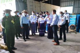 ထို့နောက်  SSBE ကုမ္ပဏီမှ မန်နေးဂျင်းဒါရိုက်တာ မစ္စတာဖုန့်က စက်ရုံ၏ လုပ်ငန်းဆောင်ရွက်နေမှုများကို ရှင်းလင်းတင်ပြပြီး ဧရာဝတီတိုင်းဒေသကြီး ဝန်ကြီးချုပ် နှင့် အစိုးရအဖွဲ့ဝင်များသည် စက်ရုံအတွင်း လုပ်ငန်းဆောင်ရွက်နေသည်များကို လှည့်လည်ကြည့်ရှုစစ်ဆေးခဲ့ကြောင်း သိရသည်။