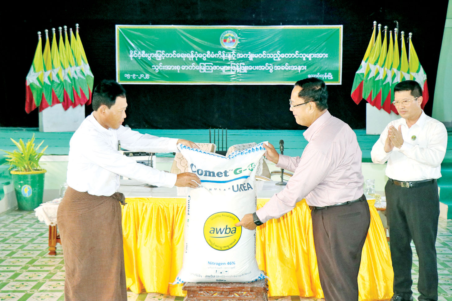 အခမ်းအနားတွင် ပြည်ထောင်စုဝန်ကြီးက ယခုအခမ်းအနားတွင် မြန်အောင်၊ အင်္ဂပူ၊ ညောင်တုန်းမြို့ နယ်တို့မှ မြေပဲစိုက်သမဝါယမ အသင်း ၂၁ သင်း၏ စိုက်ဧက ၄၅၀ အတွက် တစ်ဧကလျှင် ငွေကျပ် သုံးသိန်းနှင့် ညီမျှသော အထွက်တိုးမျိုးနှင့် သွင်းအားစုများ ပံ့ပိုးပေးမည်ဖြစ်ကြောင်း၊ ထွက်ရှိလာသော သီးနှံများ ဈေးကွက်ရရှိရေးနှင့် သမဝါယမချေးငွေများ၊ မြစိမ်းရောင် (ဆီထွက်သီးနှံနေကြာ) စီမံကိန်း ချေးငွေ၊ သက်တံ့ရောင်စီမံကိန်း ချေးငွေများကို သက်သာသော အတိုးနှုန်း၊ သီးနှံပေါ်ပေးစနစ်တို့ဖြင့် အထွက်တိုးမျိုးနှင့် သွင်းအားစုများ ပံ့ပိုးပေးလျက်ရှိကြောင်း၊ ထို့ပြင် မျိုး၊ သွင်းအားစုဓာတ်မြေ ဩဇာများကို အရည်အသွေးမှန်ကန်ပြီး ဈေးနှုန်းသက်သာစွာဖြင့် တောင်သူများလက်ဝယ် အချိန်မီ ရောက်ရှိရေး စီမံဆောင်ရွက်ပေးမည်ဖြစ်ကြောင်း ပြောကြားသည်။