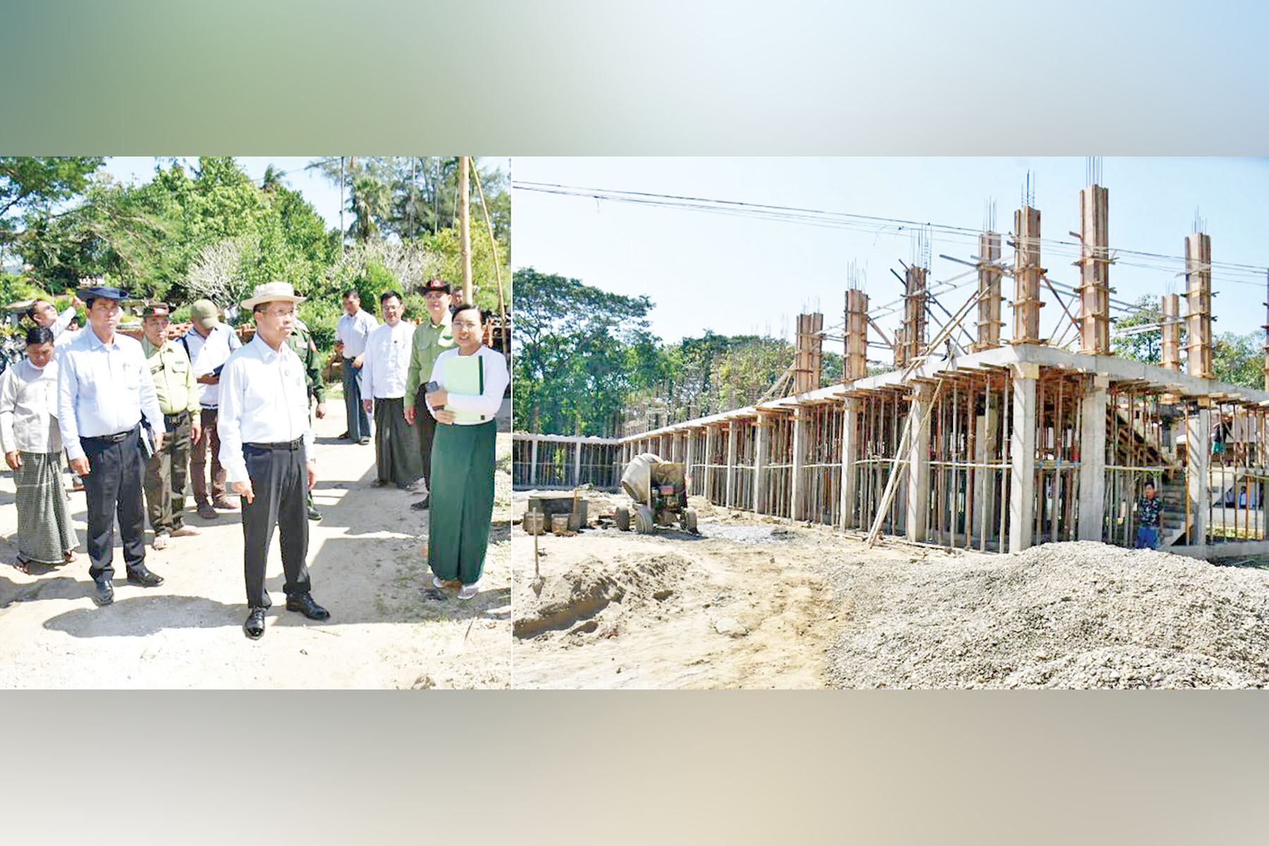 ဧရာဝတီတိုင်းဒေသကြီးဝန်ကြီးချုပ် ဦးတင်မောင်ဝင်းသည် တိုင်းဒေသကြီးအစိုးရအဖွဲ့ဝင်များ၊ တာဝန်ရှိသူများနှင့်အတူ ယနေ့မွန်းလွဲပိုင်းက ကျုံပျော်မြို့ အမှတ်(၁)အခြေခံပညာအထက်တန်း ကျောင်းသို့ သွားရောက်၍ RCC နှစ်ထပ်(Lပုံစံ)ကျောင်းဆောင်သစ် ဆောက်လုပ်နေမှုများကို ကြည့်ရှုစစ်ဆေးပြီး အဆောက်အအုံအရည်အသွေး ပြည့်မီရေး၊ သတ်မှတ်ကာလအတွင်း ပြီးစီးစေရေး တို့အတွက် လူအင်အား၊ စက်အင်အားများဖြင့် အဆိုင်းခွဲ၍ ဆောင်ရွက်ရန် မှာကြားသည်။