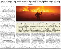 Feature သတင်းဆောင်းပါးများ စားသုံးဆီမဟုတ်သော ဝါစေ့ဆီကြမ်း သတင်း ဆောင်းပါးများ 28/02/22 ပိုမိုပြင်းထန်သည့် တောမီးလောင်မှုများနှင့် ကမ္ဘာကြီးရင်ဆိုင်ရဖွယ်ရှိ သတင်း ဆောင်းပါးများ 27/02/22 မျိုးဆက်သစ်ပျိုးခင်း သတင်း ဆောင်းပါးများ 27/02/22 ပထဝီဝင်ပညာရပ်ကိုအခြေခံပြီး လူ့စွမ်းအားအရင်းအမြစ်ကို ဖွံ့ဖြိုးတိုးတက်အောင် ဆောင်ရွက်ခြင်း သတင်း ဆောင်းပါးများ 27/02/22 မျိုးမှန်မှ အဖိုးတန် အကျိုးမှန်ရမည် သတင်း ဆောင်းပါးများ 27/02/22 ကျူးကျော်စစ်ပွဲများမှ အတိတ်သမိုင်း သင်ခန်းစာများ (၅) မကျေညက်တဲ့အတိတ်သမိုင်းနှင့်အတူ ယူကရိန်းပေးတဲ့ သင်ခန်းစာ သတင်း ဆောင်းပါးများ 27/02/22 အမျိုးသားစာပေတစ်သက်တာဆုရှင်၊ ရှေးဟောင်းသုတေသီပညာရှင် ဦးထွန်းရီ သတင်း ဆောင်းပါးများ 27/02/22 ရေအရည်အသွေးမြှင့်တင်ဖို့ ဝိုင်းဝန်းထိန်းသိမ်းဆောင်ရွက်စို့ သတင်း ဆောင်းပါးများ 27/02/22 ဖူးစေချင်ညွှန်း မြတ်မော်တင်စွန်း သတင်း ဆောင်းပါးများ 27/02/22 ခေတ်အဆက်ဆက် မီးဘေးကာကွယ်ရေးဆောင်ရွက်ခဲ့သော ရှေးဟောင်းမီးသတ်ယာဉ်များ သတင်း ဆောင်းပါးများ 27/02/22 Pagination First page « First Previous page ‹ Previous … စာမျက်နှာ 262 စာမျက်နှာ 263 လက်ရှိစာမျက်နှာ 264 စာမျက်နှာ 265 စာမျက်နှာ 266 … Next page Next › Last page Last » အဖတ်များဆုံး သတင်း ဖိလစ်ပိုင်နိုင်ငံ မာယွန်မီးတောင်ထိပ်တွင် ချော်ရည်များ မီတာ ၁၀၀ အမြင့်သို့ပန်းထွက် နိုင်ငံတကာ 13/Jan/2026 ကချင်ပြည်နယ်၊ ချင်းပြည်နယ်နှင့် ရှမ်းပြည်နယ်တို့တွင် နေရာကွက်ကျား မိုးအနည်းငယ်ရွာနိုင် မိုးလေဝသ 13/Jan/2026 ဂါဇာတောင်ပိုင်းတွင် အစ္စရေး၏ပစ်ခတ်မှုကြောင့် ပါလက်စတိုင်း သုံးဦးသေဆုံး နိုင်ငံတကာ 13/Jan/2026 နေ့စဉ်မြစ်ရေခန့်မှန်းချက်များ မိုးလေဝသ 13/Jan/2026 မန္တလေးတိုင်းဒေသကြီး၊ စစ်ကိုင်းတိုင်းဒေသကြီးနှင့် ရှမ်းပြည်နယ်တို့တွင် နေရာကွက်ကျား မိုးအနည်းငယ်ရွာနိုင် မိုးလေဝသ 13/Jan/2026