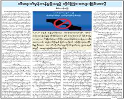 Feature သတင်းဆောင်းပါးများ ငြိမ်းချမ်းရေးတံဆိပ်ကပ်ပေးမယ့် အလုံးစုံပျက်သုဉ်းရေး လက်နက်တစ်ခု နိုဘယ်ဆု သတင်း ဆောင်းပါးများ 17/02/22 ထိရောက်မှန်ကန်မှုရှိသည့် တိုင်ကြားစာများဖြစ်စေလို သတင်း ဆောင်းပါးများ 17/02/22 မီဒီယာအဆိပ်သင့်တဲ့ပြည့် သတင်း ဆောင်းပါးများ 17/02/22 ဒီမိုကရေစီဟု ဆိုရာဝယ် ... သတင်း ဆောင်းပါးများ 17/02/22 မီဒီယာအဆိပ်သင့်တဲ့ပြည် သတင်း ဆောင်းပါးများ 16/02/22 ကျွန်တော်လွမ်းမိသော ငြိမ်းချမ်းရေးပုံရိပ်များ (ကယားပြည်နယ်) သတင်း ဆောင်းပါးများ 16/02/22 ကျန်းမာမှု အနုပညာ သတင်း ဆောင်းပါးများ 16/02/22 ရေနံ့သာခင်ခင်ကြီး သတင်း ဆောင်းပါးများ 16/02/22 ဒီမိုကရေစီဟုဆိုရာဝယ်... သတင်း ဆောင်းပါးများ 16/02/22 ရေနံ့သာခင်ခင်ကြီး သတင်း ဆောင်းပါးများ 14/02/22 Pagination First page « First Previous page ‹ Previous … စာမျက်နှာ 268 စာမျက်နှာ 269 လက်ရှိစာမျက်နှာ 270 စာမျက်နှာ 271 စာမျက်နှာ 272 … Next page Next › Last page Last » အဖတ်များဆုံး သတင်း ဖိလစ်ပိုင်နိုင်ငံ မာယွန်မီးတောင်ထိပ်တွင် ချော်ရည်များ မီတာ ၁၀၀ အမြင့်သို့ပန်းထွက် နိုင်ငံတကာ 13/Jan/2026 ကချင်ပြည်နယ်၊ ချင်းပြည်နယ်နှင့် ရှမ်းပြည်နယ်တို့တွင် နေရာကွက်ကျား မိုးအနည်းငယ်ရွာနိုင် မိုးလေဝသ 13/Jan/2026 ဂါဇာတောင်ပိုင်းတွင် အစ္စရေး၏ပစ်ခတ်မှုကြောင့် ပါလက်စတိုင်း သုံးဦးသေဆုံး နိုင်ငံတကာ 13/Jan/2026 နေ့စဉ်မြစ်ရေခန့်မှန်းချက်များ မိုးလေဝသ 13/Jan/2026 မန္တလေးတိုင်းဒေသကြီး၊ စစ်ကိုင်းတိုင်းဒေသကြီးနှင့် ရှမ်းပြည်နယ်တို့တွင် နေရာကွက်ကျား မိုးအနည်းငယ်ရွာနိုင် မိုးလေဝသ 13/Jan/2026
