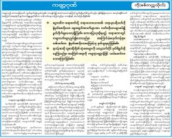Feature သတင်းဆောင်းပါးများ ကိုဗစ်-၁၉ ရောဂါကာလအတွင်း နိုင်ငံတော်၏ လူမှုကာကွယ်စောင့်ရှောက်ရေးလုပ်ငန်းများတွင် အားဖြည့် ဆောင်ရွက်ပေးလျက်ရှိသည့် လူမှုဖူလုံရေးလုပ်ငန်းများအကြောင်း တစေ့တစောင်း သတင်း ဆောင်းပါးများ 22/09/21 စာဖတ်ခြင်းအလေ့အထ သတင်း ဆောင်းပါးများ 21/09/21 မြန်မာပြည်ကို ချစ်သည့်သူမှန်သမျှ အမိနိုင်ငံကို ကူညီစောင့်ရှောက်ကြ သတင်း ဆောင်းပါးများ 21/09/21 ရေနံ့သာ ခင်ခင်ကြီး သတင်း ဆောင်းပါးများ 21/09/21 ကပ်ရောဂါကြားမှတိုကျို အိုလံပစ်အားကစားပြိုင်ပွဲအပြီး အနာဂတ်အားကစားပြိုင်ပွဲများအပေါ် သဘောထားကွဲလွဲမှုများဖြစ် သတင်း ဆောင်းပါးများ 21/09/21 ကဗျာ့ဂုဏ် သတင်း ဆောင်းပါးများ 21/09/21 "အိမ်မာနေချင်တာပေါ့ အဖေ" သတင်း ဆောင်းပါးများ 21/09/21 လမ်းတံတားများဖြင့် ဖွံ့ဖြိုးတိုးတက်နေသည့် တတိယမြို့တော် မန္တလေး သတင်း ဆောင်းပါးများ 21/09/21 တိုးတက်လိုသူများ သတင်း ဆောင်းပါးများ 21/09/21 ကြီးမားသောစွမ်းဆောင်ချက် သတင်း ဆောင်းပါးများ 21/09/21 Pagination First page « First Previous page ‹ Previous … စာမျက်နှာ 355 စာမျက်နှာ 356 လက်ရှိစာမျက်နှာ 357 စာမျက်နှာ 358 စာမျက်နှာ 359 … Next page Next › Last page Last » အဖတ်များဆုံး သတင်း စက်မှု၊ စိုက်ပျိုး၊ မွေးမြူရေးတက္ကသိုလ်၀င်စာမေးပွဲ စာစစ်ဌာနကြီးကြပ်ရေးမှူးများ၊ တွဲဖက်ကြီးကြပ်ရေးမှူးများ၊ လက်ထောက်ကြီးကြပ်ရေးမှူးများနှင့် စာဖြေသူများလိုက်နာရန် စည်းကမ်းချက်များဆိုင်ရာ ဆွေးနွေးပွဲနှင့် သင်တန်းဖွင့်ပွဲ ကျင်းပ ပြည်တွင်း 18/Jan/2026 နိုင်ငံ့အကျိုးပြု အင်ဂျင်နီယာလူငယ်ကောင်းများ စံနှုန်းများနှင့်အညီ ပျိုးထောင်ဆောင်ရွက် ပြည်တွင်း 18/Jan/2026 အမျိုးသားလွှတ်တော်ကိုယ်စားလှယ်အဖြစ် ရွေးကောက်တင်မြှောက်ခံရသူများအမည်စာရင်း ကြေညာ ပြည်တွင်း 18/Jan/2026 မြန်မာနိုင်ငံ၏ အမှန်တရားနှင့်တရားမျှတမှုအတွက် ရင်ဆိုင်ဖြေရှင်းနေသော မြန်မာကိုယ်စားလှယ်အဖွဲ့နှင့် တစ်သားတည်းရပ်တည်လျက်ရှိကြောင်း ဘာသာပေါင်းစုံချစ်ကြည်ညီညွတ်ရေးအဖွဲ့(ဗဟို)၏ သဘောထားထုတ်ပြန်ချက် ပြည်တွင်း 18/Jan/2026 ဘင်္ဂါလီဆိုတဲ့ ရိုဟင်ဂျာအသံလွှင့်အစီအစဉ်က တိုင်းရင်းသားမဟုတ်တဲ့အတွက်ကြောင့် အဲဒီအချိန်ကတည်းကိုက နယ်ခြားဒေသလူမျိုးစုအစီအစဉ်ဆိုပြီး ထည့်သွင်းထားတာကို ၁၉၆၁ ခုနှစ် နေ့စဉ်ထုတ်သတင်းစာတွေမှာ လေ့လာတွေ့ရှိခဲ့ရပါတယ် တွေ့ဆုံ မေးမြန်းခန်း 18/Jan/2026