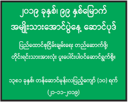 General အထွေထွေ ဆောင်းတွင်းမှာဂရုပြုစရာ အထွေထွေ 29/12/19 အရေးကြီးပြီ သွေးစည်းညီစို့ အထွေထွေ 10/12/19 တောင်းမှာအကွပ် လူမှာအဝတ် အထွေထွေ 08/12/19 ဒီဇင်ဘာရဲ့ညတစ်ညမှာ ကလေးတွေကို လက်ဆောင်တွေပေးတဲ့ ဘိုးဘိုးကြီး ဆန်တာကလော့ အထွေထွေ 01/12/19 စာသင်ခန်းထဲမှာသတိထားရမယ့် အမူအကျင့်လေးတွေ အထွေထွေ 01/12/19 ၁၉၉၉ မှ ၂၀၀၃ ခုနှစ်ထုတ် ဘတ်စ်ကားများအပ်နှံ၍ လူစီးယာဉ်တင်သွင်းခွင့် ထောက်ခံချက် ထုတ်ယူရန် YRTA သို့ လာရောက်တင်ပြထားသည့် အစီးရေ ၁၄၀ ကျော်ရှိ အထွေထွေ 27/11/19 ကလေးတို့ချစ်တဲ့ ရေခဲမင်းသမီးလေး အယ်ဆာ အထွေထွေ 24/11/19 စာသင်ခန်းထဲမှာ သတိပြုစရာ အထွေထွေ 24/11/19 ၂၀၁၉ ခုနှစ်၊ ၉၉ နှစ်မြောက် အမျိုးသားအောင်ပွဲနေ့ ဦးတည်ချက် အထွေထွေ 19/11/19 ၂၀၁၉ ခုနှစ်၊ ၉၉ နှစ်မြောက် အမျိုးသားအောင်ပွဲနေ့ ဆောင်ပုဒ် အထွေထွေ 19/11/19 Pagination First page « First Previous page ‹ Previous … စာမျက်နှာ 42 စာမျက်နှာ 43 လက်ရှိစာမျက်နှာ 44 စာမျက်နှာ 45 စာမျက်နှာ 46 … Next page Next › Last page Last » အဖတ်များဆုံး သတင်း ဂျာမနီနိုင်ငံ၌ ကလေးများ လူမှုကွန်ရက်မီဒီယာအသုံးပြုခွင့်ပိတ်ပင်ရေးကို လက်ခံသွားဖွယ်ရှိဟု ဒစ်ဂျစ်တယ်ဝန်ကြီးပြောကြား နိုင်ငံတကာ 28/Dec/2025 ဆိုးရွားသည့် ရာသီဥတုအခြေအနေများ ဖြစ်ပေါ်နေချိန် တောင်တက်ခရီးတက်ခဲ့ကြသည့် ဂရိတောင်တက်သမားလေးဦးကို သေဆုံးလျက်တွေ့ရှိ နိုင်ငံတကာ 28/Dec/2025 နယ်စပ်ပဋိပက္ခများ အဆုံးသတ်ရေး ထိုင်းနှင့် ကမ္ဘောဒီးယားနိုင်ငံတို့ အပစ်အခတ်ရပ်စဲရေး သဘောတူညီချက်သစ် လက်မှတ်ရေးထိုး အာဆီယံ သတင်း 28/Dec/2025 ဝါးခယ်မမြို့နယ်အတွင်းသို့ ယာယီရွှေ့ပြောင်းနေထိုင်သူ ပြည်သူများအား သုံးလစာ ထောက်ပံ့ငွေနှင့် ပစ္စည်းများပေးအပ် ပြည်တွင်း 28/Dec/2025 အာဆီယံ ယူ-၁၆ ဖူဆယ်ချန်ပီယံရှစ်ပြိုင်ပွဲ အုပ်စုပွဲစဉ်များပြီးဆုံးပြီး မြန်မာအသင်း တတိယလုပွဲ ကစားခွင့်ရရှိ အားကစား 28/Dec/2025