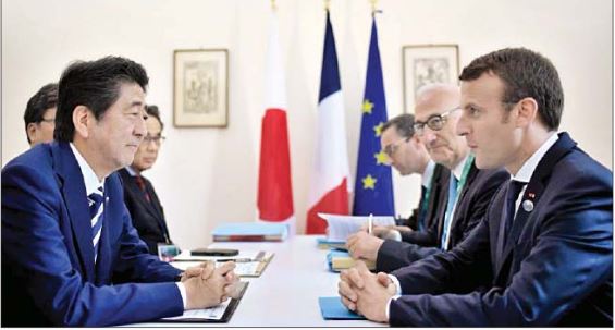 ပြင်သစ်သမ္မတသည် ဇွန် ၂၆ ရက်ညနေပိုင်းတွင် ဂျပန်ဝန်ကြီးချုပ်ရုံး၌ ဝန်ကြီးချုပ် အာဘေးနှင့်တွေ့ဆုံခဲ့သည်။ ပြင်သစ်နှင့်ဂျပန် နှစ်နိုင်ငံခေါင်းဆောင်များသည် လွတ်လပ်စွာကုန်သွယ်ရေး၊ ရာသီဥတုပြောင်းလဲမှုဆိုင်ရာနှင့် ဒေသတွင်း လုံခြုံရေးဆိုင်ရာ ကိစ္စရပ်များ၌ နှစ်နိုင်ငံအကျိုးတူပူးပေါင်းဆောင်ရွက်မှုများ ပြုလုပ်ရေးအတွက် ဆွေးနွေးခဲ့ကြသည်။