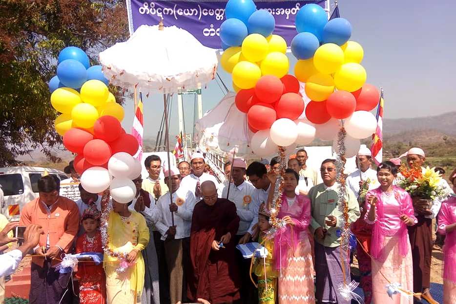 တိပိဋကဓရ တိပိဋကကောဝိဒ ဓမ္မဘဏ္ဍာဂါရိက အဂ္ဂမဟာပဏ္ဍိတ ယောဆရာတော် ဘဒ္ဒန္တသိရိန္ဒာဘိဝံသ၏ လှူဒါန်းမှုဖြင့် မောက်လင်းကျေးရွာအနီးတွင် မတည်ဆောက်လုပ်သည့် မြစ်သာမြစ်ကူး လူကူးကြိုးတံတား အမှတ်(၂) ဖွင့်ပွဲကို မတ် ၃ ရက်က အဆိုပါတံတားထိပ်၌ ကျင်းပရာ ယောဆရာတော် ဘဒ္ဒန္တသိရိန္ဒာဘိဝံသ၊ မကွေးတိုင်းဒေသကြီး လွှတ်တော်ကိုယ်စားလှယ် ဦးအောင်ဆန်းဝင်း၊ ဂန့်ဂေါခရိုင် ခေတ္တခရိုင်အုပ်ချုပ်ရေးမှူး ဦးမောင်မောင်နိုင်တို့က ဖဲကြိုးဖြတ်၍ ဖွင့်လှစ်ကြသည်။