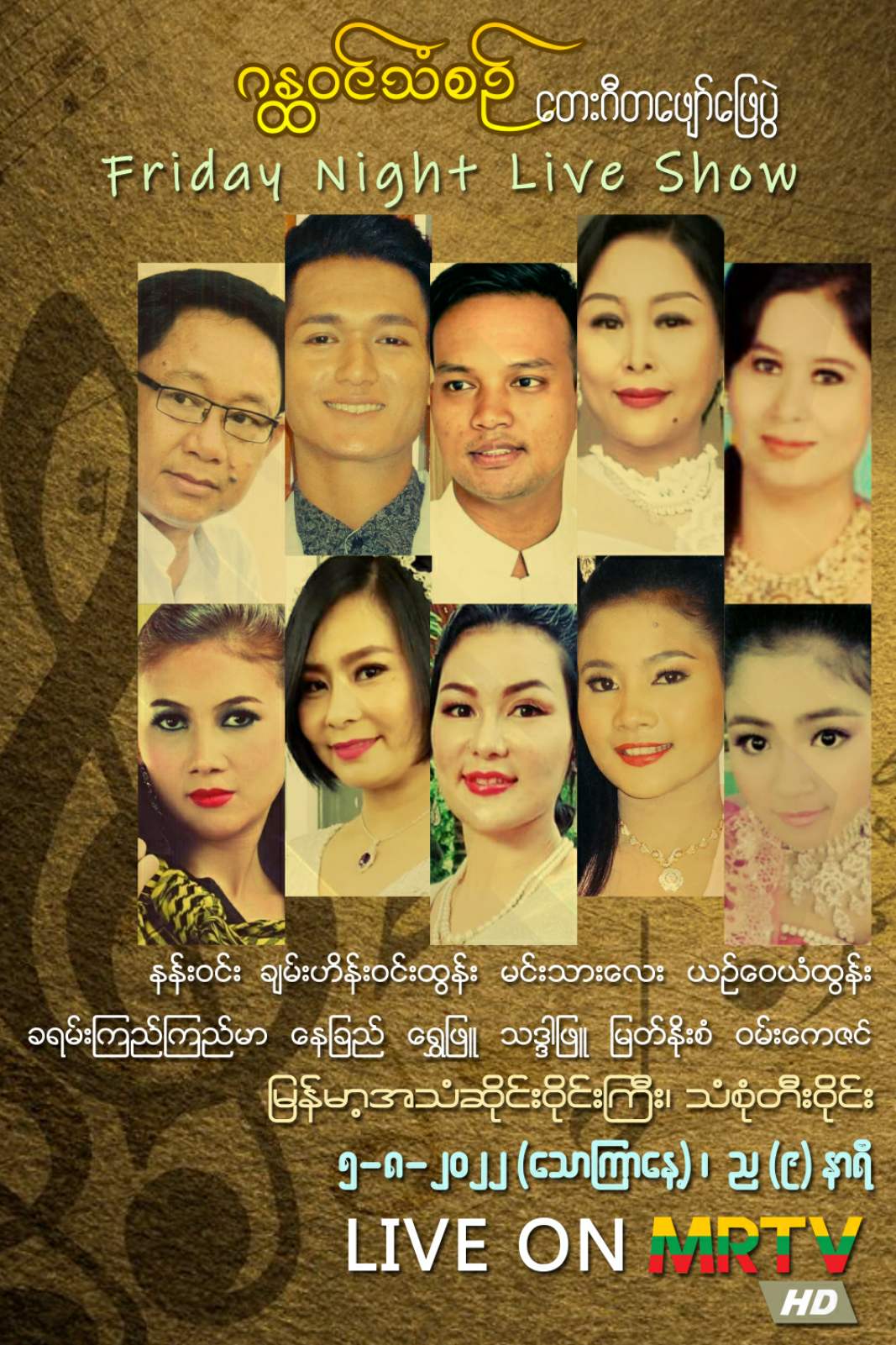 ပြည်သူများ အပန်းပြေစေရန်၊ ပျော်ရွှင်စေရန်နှင့် စိတ်ခွန်အားသစ်များ ရရှိနိုင်ရန်အတွက် မြန်မာ့အသံနှင့်ရုပ်မြင်သံကြားမှ ဖျော်ဖြေရေးအစီအစဉ်များကို တိုးမြှင့်တင်ဆက်လျက်ရှိရာ Friday Night Live Show အဖြစ် တင်ဆက်မည့် “ဂန္ထဝင်သံစဉ်” တေးဂီတဖျော်ဖြေပွဲကို မြန်မာ့အသံနှင့် ရုပ်မြင်သံကြား၏ MRTV-HD Channel မှ ဩဂုတ် ၅ ရက် ၊ သောကြာနေ့ ည(၈)နာရီ သတင်းအပြီးတွင် ထုတ်လွှင့်ပြသမည်ဖြစ်သည်။