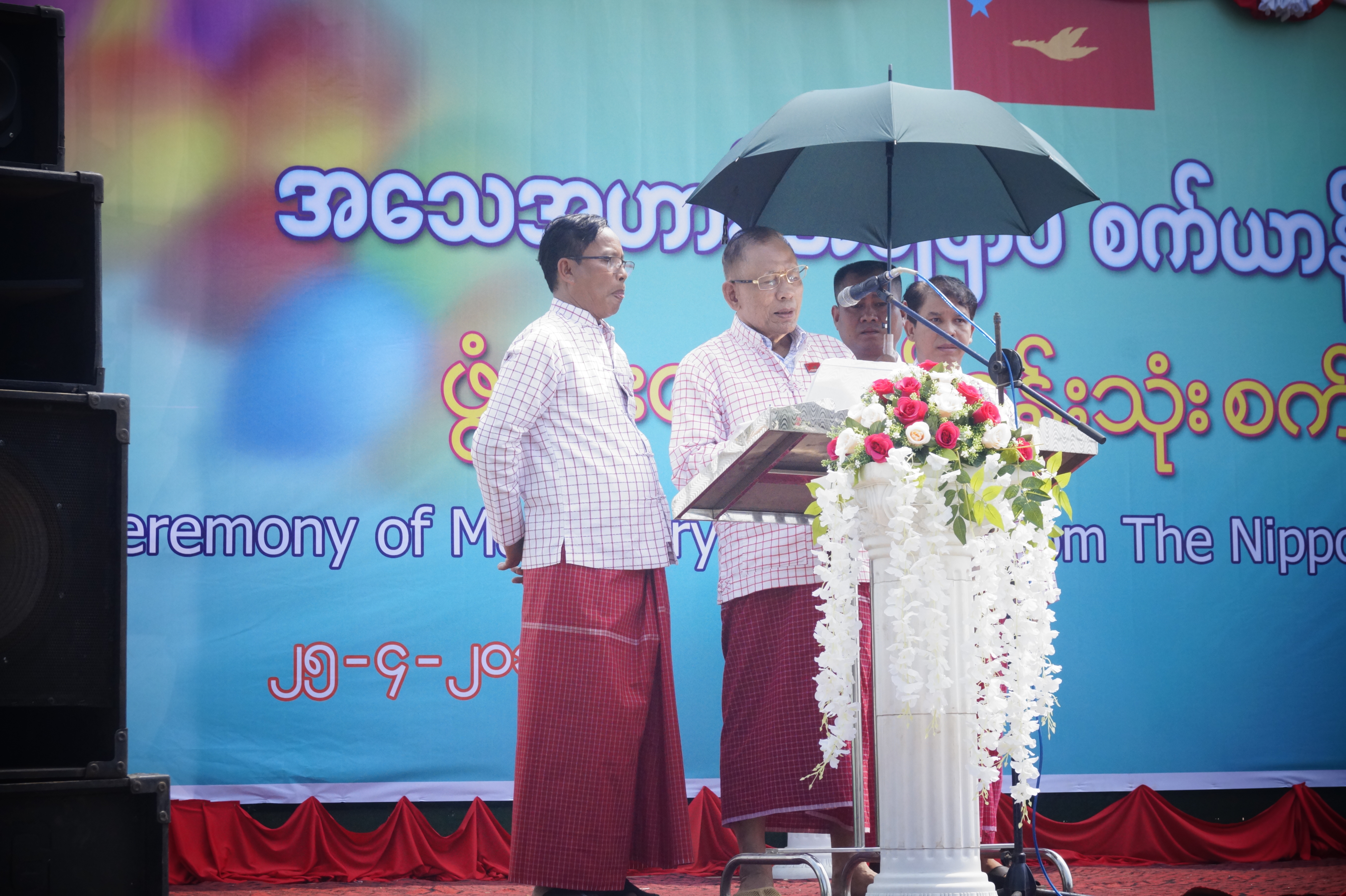 အဆိုပါ နိပွန်ဖောင်ဒေးရှင်းတို့မှ အကူအညီပေးရေးဆိုင်ရာ လုပ်ငန်းစဉ်(၅)ခုဖြစ်သည့် ယာဉ်ယန္တရား ပံ့ပိုးပေးအပ်ခြင်း၊ ကျန်းမာရေး အဆောက်အဦ(၂)လုံး ပေးအပ်ခြင်း၊ ပညာရေးအဆောက်အဦ (၆)လုံး၊ ရဲဘော်အိမ်ရာ (၃၃၀)ဆောက်လုပ်ပေးခြင်းနှင့် ကျေးရွာ(၇)ရွာတွင် ဆိုလာမီးတပ်ဆင်ပေးခြင်း စသည့် လုပ်ငန်းစဉ်ထဲမှ ပထဆုံးအနေဖြင့် ယာဉ်ယန္တရားပေးအပ်ခြင်း အစီအစဉ်ဖြစ်ကြောင်း သိရသည်။