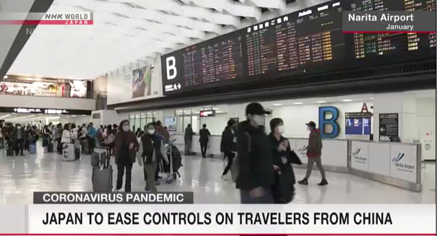 ဂျပန်နိုင်ငံအစိုးရက တရုတ်နိုင်ငံမှရောက်ရှိလာမည့်ခရီးသွားများအတွက် ကိုဗစ်-၁၉ရောဂါဆိုင်ရာ နယ်စပ်ဒေသထိန်းချုပ်မှုများကို မတ်လ ၁ ရက်မှစတင်ကာ ဖြေလျှော့ပေးသွားမည်ဖြစ်ကြောင်း သိရသည်။