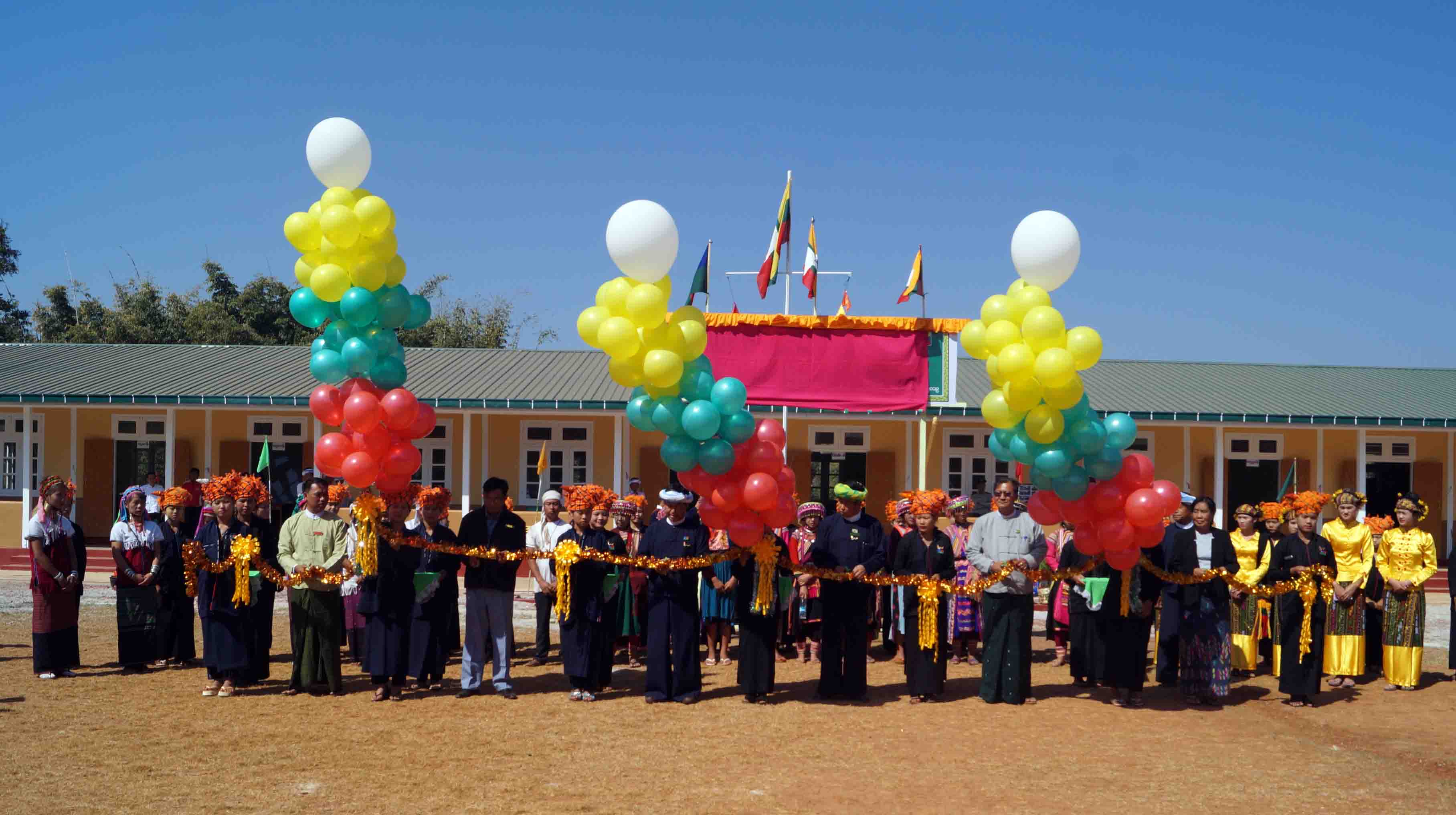 ရှေးဦးစွာ ကျောင်းဆောင်သစ်ကို ပအိုဝ်းကိုယ်ပိုင်အုပ်ချုပ်ခွင့်ရဒေသ ဦးစီးအဖွဲ့ဥက္ကဋ္ဌ ဦးခွန်စံလွင်၊ ဆီဆိုင်မြို့နယ် မဲဆန္ဒနယ်အမှတ်(၁) ပြည်နယ်လွှတ်တော်ကိုယ်စားလှယ် ဦးခွန်လှသိန်း၊ ရှမ်းပြည်နယ်(တောင်ပိုင်း)၊ ခရိုင်ပညာရေးမှူး ဦးကိုကိုနိုင်၊ ခေတ္တမြို့နယ်အုပ်ချုပ်ရေးမှူး ဦးစောမောင်ဗွေ၊ နိပွန်ဖောင်ဒေးရှင်း (စေတနာ) အဖွဲ့တာဝန်ခံ ဒေါ်အေးအေးသန့်နှင့် နယ်စပ်ဒေသနှင့် တိုင်းရင်းသားလူမျိုးများ ဖွံ့ဖြိုးတိုးတက်ရေးဦးစီးဌာန၊ မြို့နယ်ဖွံ့ဖြိုးမှုကြီးကြပ်ရေးရုံး (ဟိုပုံး)မှ လက်ထောက်ညွှန်ကြားရေးမှူး ဦးခင်မောင်သက်တို့က ဖဲကြိုးဖြတ်ဖွင့်လှစ်ပေးပြီး ကျောင်းဆောင်သစ်ရှေ့တွင် စုပေါင်းအမှတ်တရ ဓါတ်ပုံရိုက်ကူးကြကာ အမှတ်တရ သစ်ပင်စိုက်ပျိုး၍ ကျောင်းဆောင်သစ်အား လှည့်လည်ကြည့်ရှုခဲ့သည်။