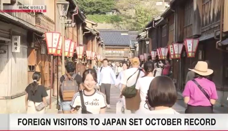 ဂျပန်နိုင်ငံသို့ နိုင်ငံခြားခရီးသွားလာရောက်လည်ပတ်မှုအရေအတွက်သည် အောက်တိုဘာလတွင် စံချိန်တင်မြင့်တက်ခဲ့သည်ဟု သိရသည်။