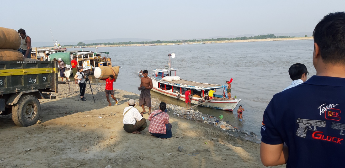 ဧရာဝတီလင်းပိုင် အကူအညီဖြင့် ရေလုပ်သားများ ငါးဖမ်းကြပုံအစဉ်အလာနှင့် ရေလုပ်သားများ၏ဘဝကို ယမန်နေ့က စစ်ကိုင်းတိုင်းဒေသကြီး၊ မင်းကွန်းဒေသရှိ ဧရာဝတီမြစ်ကြောင်းတစ်လျှောက်မှ ကျေးရွာများတွင် ဂျပန်နိုင်ငံမှ ရိုက်ကူးရေးအဖွဲ့က မှတ်တမ်းရိုက်ကူးသည်။