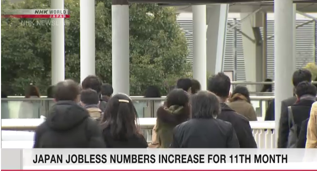 ဂျပန်နိုင်ငံ အစိုးရ၏ နောက်ဆုံးရရှိသော အချက်အလက်အရ အလုပ်လက်မဲ့ ဦးရေမှာ အစောပိုင်းနှစ်ဖြင့် နှိုင်းယှဉ်ပါက ဒီဇင်ဘာလတွင် အလုပ်လက်မဲ့ဦးရေ ၄၉၀၀၀၀ ရှိလာသည်ဟု သိရသည်။