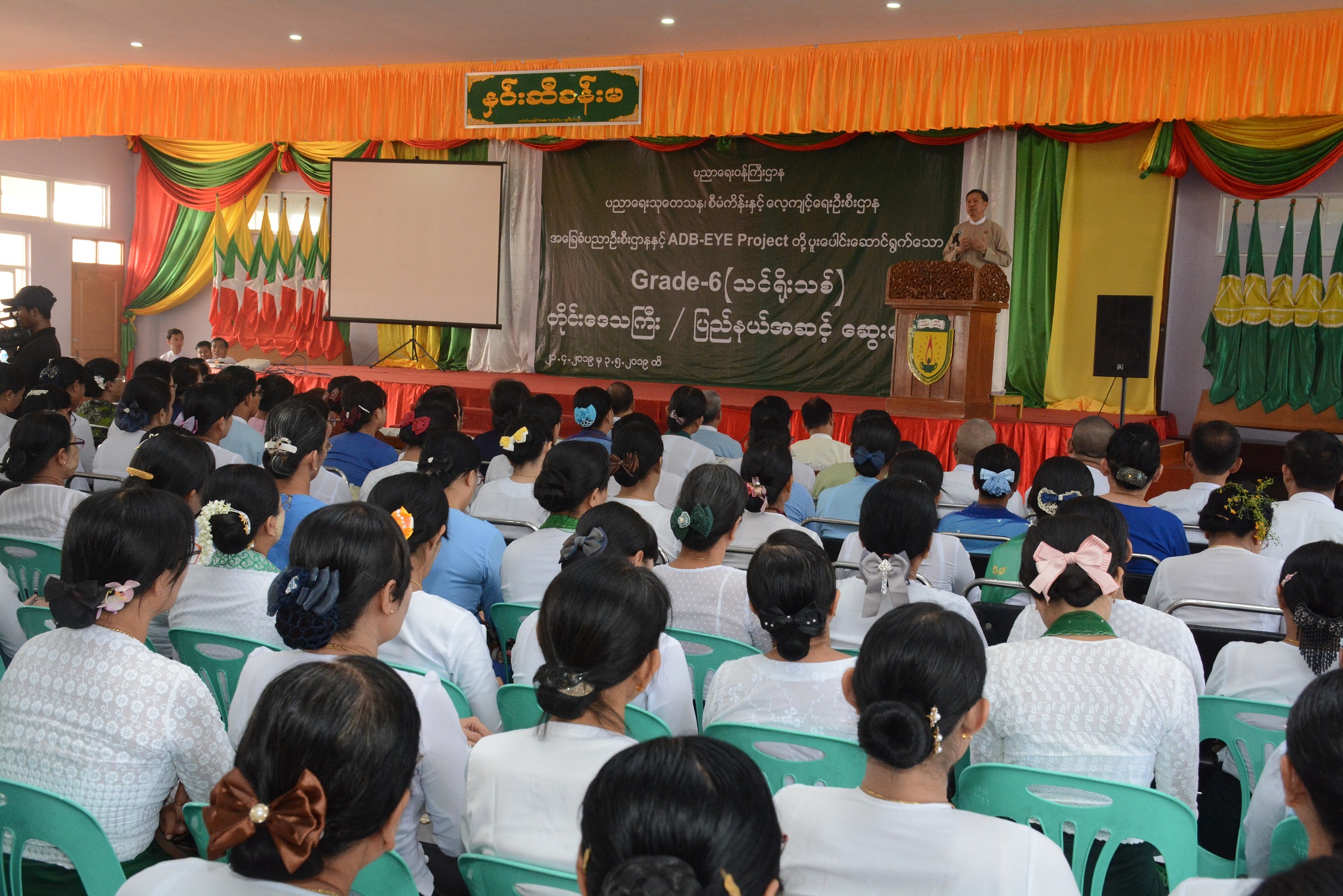 ပညာရေးဝန်ကြီးဌာန ပညာရေးသုတေသန၊ စီမံကိန်းနှင့် လေ့ကျင့်ရေးဦးစီးဌာန၊ အခြေခံပညာဦးစီးဌာန နှင့် ADB-EYE Project တို့ပူးပေါင်းဆောင်ရွက်သည့် Grade-6 (သင်ရိုးသစ်) တိုင်းဒေသကြီး ပြည်နယ်အဆင့် ဆွေးနွေးပွဲ အခမ်းအနားကို ယနေ့နံနက် ၉ နာရီတွင် ရန်ကုန်မြို့ ကမာရွတ်မြို့နယ် ပညာရေးတက္ကသိုလ် လေ့ကျင့်ရေး အထက်တန်းကျောင်းရှိ နှင်းဆီခန်းမ၌ ကျင်းပသည်။