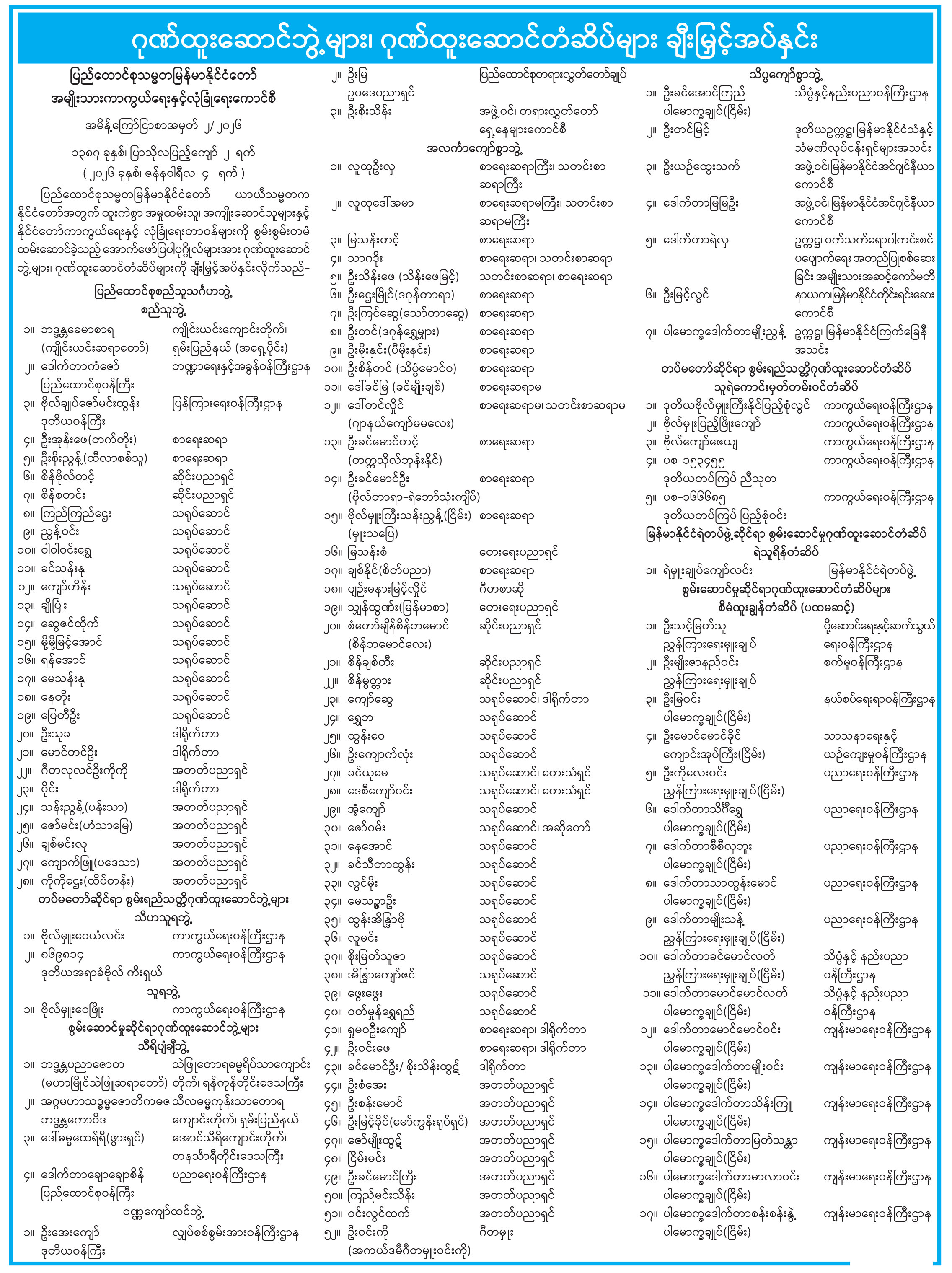 ၂၀၂၅ ခုနှစ် ပါတီစုံဒီမိုကရေစီအထွေထွေရွေးကောက်ပွဲအပိုင်း(၁) ပြည်သူ့လွှတ်တော် ကိုယ်စားလှယ်လောင်း တစ်ဦးချင်း ဆန္ဒမဲရရှိမှုအခြေအနေ
