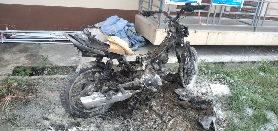 ဟားခါးမြို့ Facility Quarantine ထားရှိသည့် ဟားခါးတက္ကသိုလ် ကနေဒီဆောင်ရှေ့တွင် စက်တင်ဘာလ ၂၂ရက် နံနက် ၁၁နာရီ မိနစ် ၅၀ က ကချင်ပြည်နယ် မြစ်ကြီးနား တပ်ရင်း(၃၀)မှ ချင်းပြည်နယ် ရဲတပ်ဖွဲ့တွင် ပြောင်းရွှေ့တာဝန်ထမ်းဆောင်မည့် Facility Quarantine ဝင်ရောက်သူ ရဲတပ်သား ရွန်ပဲင်းဆန်၏ 125 (Canda) ဆိုင်ကယ်တစ်စီး သော့အိမ်တွင် ရေဝင်ရာမှ ဝိုင်ယာရှော့ဖြစ်ပြီး မီးလောင်မှု ဖြစ်ပွားခဲ့ကြောင်း သိရှိရသည်။