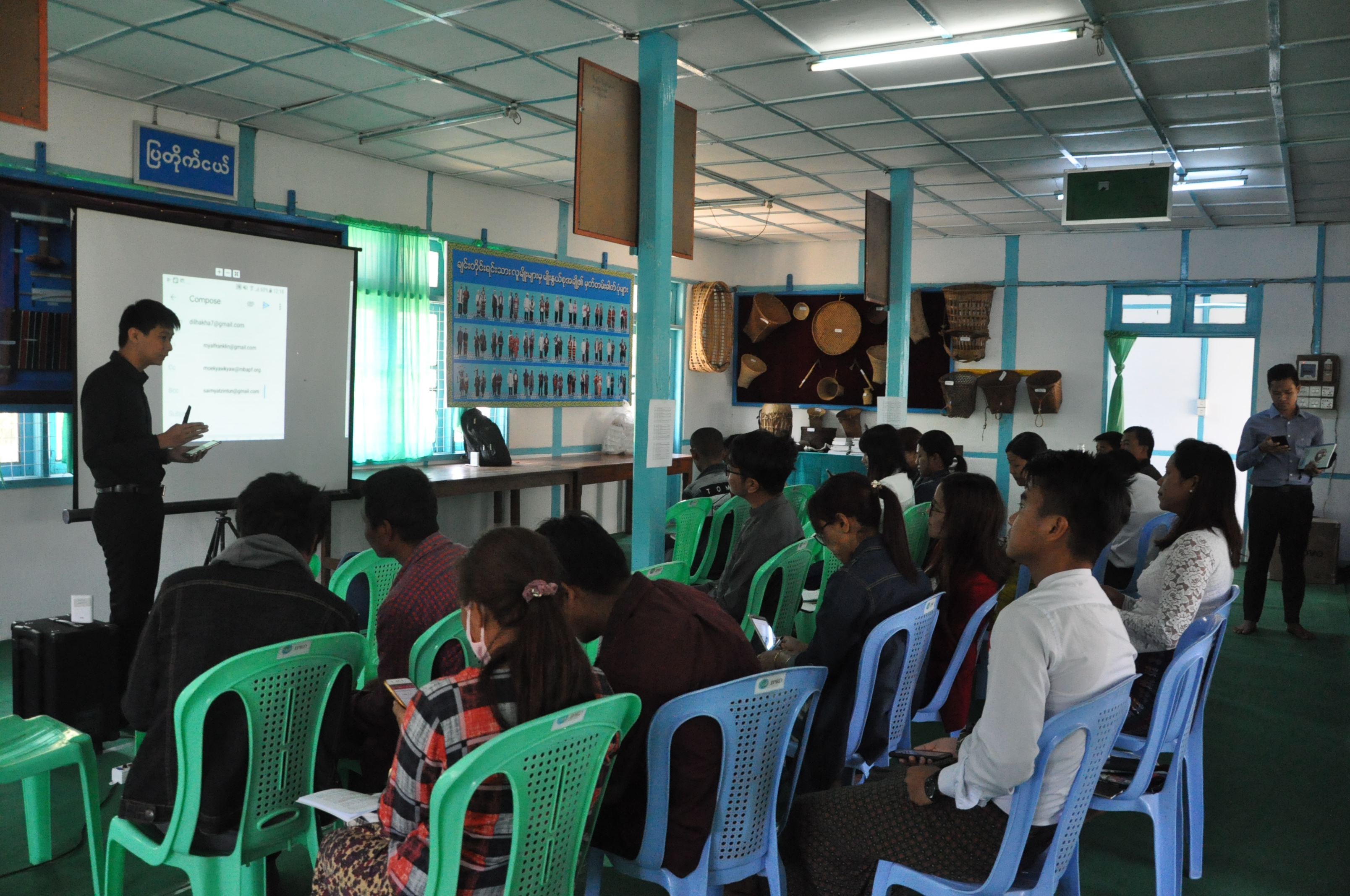 ဟားခါး ခရိုင်ပြန်ကြားရေးနှင့် ပြည်သူ့ဆက်ဆံရေးဦးစီးဌာနနှင့် MBAPF ၊ MEC Education တို့ပူးပေါင်း ဖွင့်လှစ်သည့်  ဒစ်ဂျစ်တယ်လ် သတင်းအချက်အလက်ဆိုင်ရာ နည်းပညာသင်တန်း အမှတ်စဉ် (၂ / ၂၀၁၉) ကို ယနေ့ နံနက် ၉ နာရီက ချင်းပြည်နယ် ဟားခါးမြို့ လူထုအခြေပြုဗဟိုဌာန (Community Centre) ခန်းမတွင် ကျင်းပရာ ရှေးဦးစွာ ဟားခါးခရိုင် ပြန်ကြားရေးနှင့်ပြည်သူ့ဆက်ဆံရေးဦးစီးဌာန၊ ခရိုင်ဦးစီးမှူး ဦးမြင့်နိုင်စိုးက သင်တန်းဖွင့်လှစ်ရခြင်း ရည်ရွယ်ချက်များနှင့်ပတ်သတ်၍ ရှင်းလင်းပြောကြားပြီးနောက် သင်တန်းနည်းပြ ဦးမိုးကျော်ကျော်(MBAPF)က သင်ကြားမည့်ဘာသာရပ်များကို မိတ်ဆက်ရှင်းလင်းပြောကြားသည်။