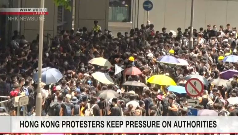ဟောင်ကောင်တရားခံလွှဲပြောင်းရေး ဥပဒေမူကြမ်းပြင်ဆင်ခြင်းကို ကန့်ကွက်သည့် ထောင်ချီရှိသော ဆန္ဒပြလူငယ်များ ဟောင်ကောင်အလယ်ပိုင်းရှိ ရဲဌာနချုပ်ကို ဝန်းရံကာဆန္ဒပြခဲ့သည်ဟု သိရသည်။