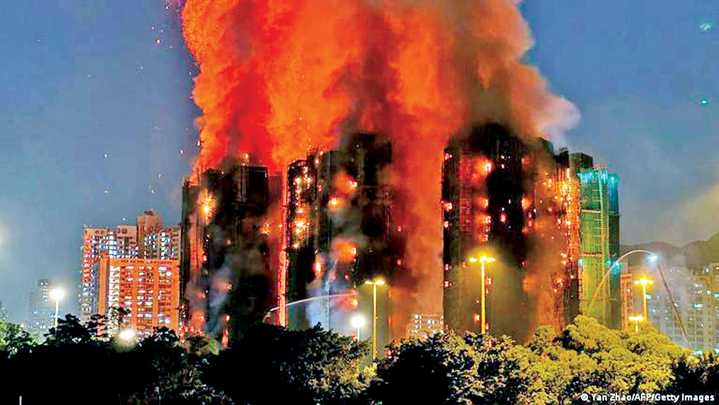 နိုဝင်ဘာ ၂၆ ရက် ဒေသစံတော်ချိန် ညနေ ၃ နာရီမထိုးမီအချိန်တွင် တိုင်ပိုခရိုင်ရှိ အထပ်မြင့်အဆောက်အအုံ မီးစတင်လောင်ကျွမ်းခဲ့ကြောင်း မီးသတ်တပ်ဖွဲ့က ပြောကြားသည်။