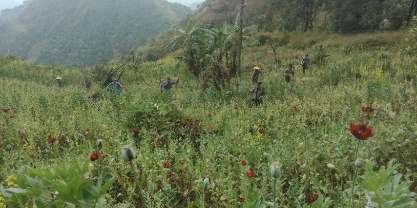 ရှမ်းပြည်နယ်၊ ဟိုပုံးမြို့နယ်၊ ဟိုပုံးမြို့မရဲစခန်းမှ တပ်ဖွဲ့ဝင်များပါဝင်သော ပူးပေါင်းအဖွဲ့သည် ဇန်နဝါရီ ၁၀ ရက် နံနက် ၇ နာရီမှ ညနေ ၃ နာရီခွဲအထိ ဟိုပုံးမြို့နယ်၊ ထီမောက်လွတ်ကျေးရွာ၏ တောင်ဘက် ၁ မိုင်ခန့်အကွာ အနီးတစ်ဝိုက်၌ အမြင့် ၂ ပေခန့် သီးပွင့်ဆဲ ဘိန်းစိုက်ခင်း ၃ ဧကခန့်အား ဖျက်ဆီးခဲ့ကြောင်း သတင်းရရှိသည်။