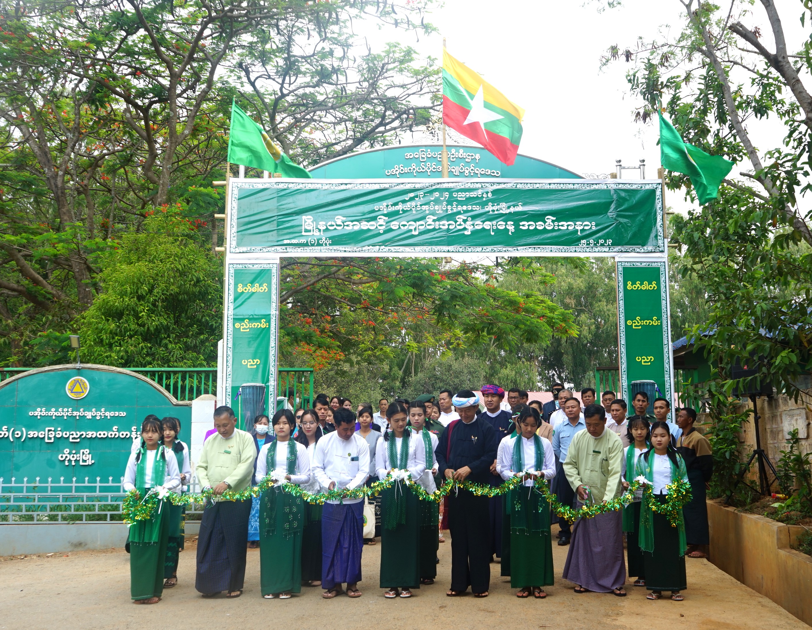 ဦးစွာ ပအိုဝ်းကိုယ်ပိုင်အုပ်ချုပ်ခွင့်ရဒေသ စီမံအုပ်ချုပ်ရေးအဖွဲ့ ဥက္ကဋ္ဌ ဦးခွန်ရဲထွေး၊ ပအိုဝ်းကိုယ်ပိုင်အုပ်ချုပ်ခွင့်ရဒေသ စီမံအုပ်ချုပ်ရေးအဖွဲ့ အတွင်းရေးမှူး ဦးတင်ထူးမောင်၊ မြို့နယ်စီမံအုပ်ချုပ်ရေးအဖွဲ့ ဥက္ကဋ္ဌ ဦးမြင့်ထွန်းနှင့် ပအိုဝ်းကိုယ်ပိုင်အုပ်ချုပ်ခွင့်ရဒေသ ပညာရေးမှူး ဦးစိုးသစ်တို့က မြို့နယ်အဆင့် ကျောင်းအပ်နှံရေးနေ့ အခမ်းအနားကို ဖဲကြိုးဖြတ်ဖွင့်လှစ်ပြီး ကျောင်းသား ကျောင်းသူများက မြန်မာ့ကျောင်းသီချင်းဖြင့် ဖျော်ဖြေသည်။