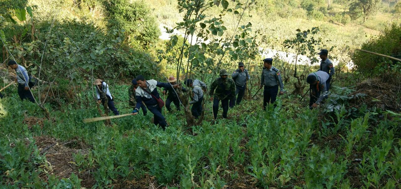 အလားတူ မိုင်းပျဉ်းမြို့နယ်၊ ပါထားကျေးရွာ အနောက်တောင်ဘက် ၆ မိုင်ခန့်အကွာ၌ အမြင့် ၃ ပေခန့်ရှိ ဘိန်းစိုက်ခင်း (၁၅)ဧကခန့်အား ရဲတပ်ဖွဲ့ဝင်များပါဝင်သည့် ပူးပေါင်းအဖွဲ့က ဖျက်ဆီးရှင်းလင်းခဲ့ကြောင်း ရဲတပ်ဖွဲ့ သတင်းထုတ်ပြန်ချက်အရ သိရှိရသည်။