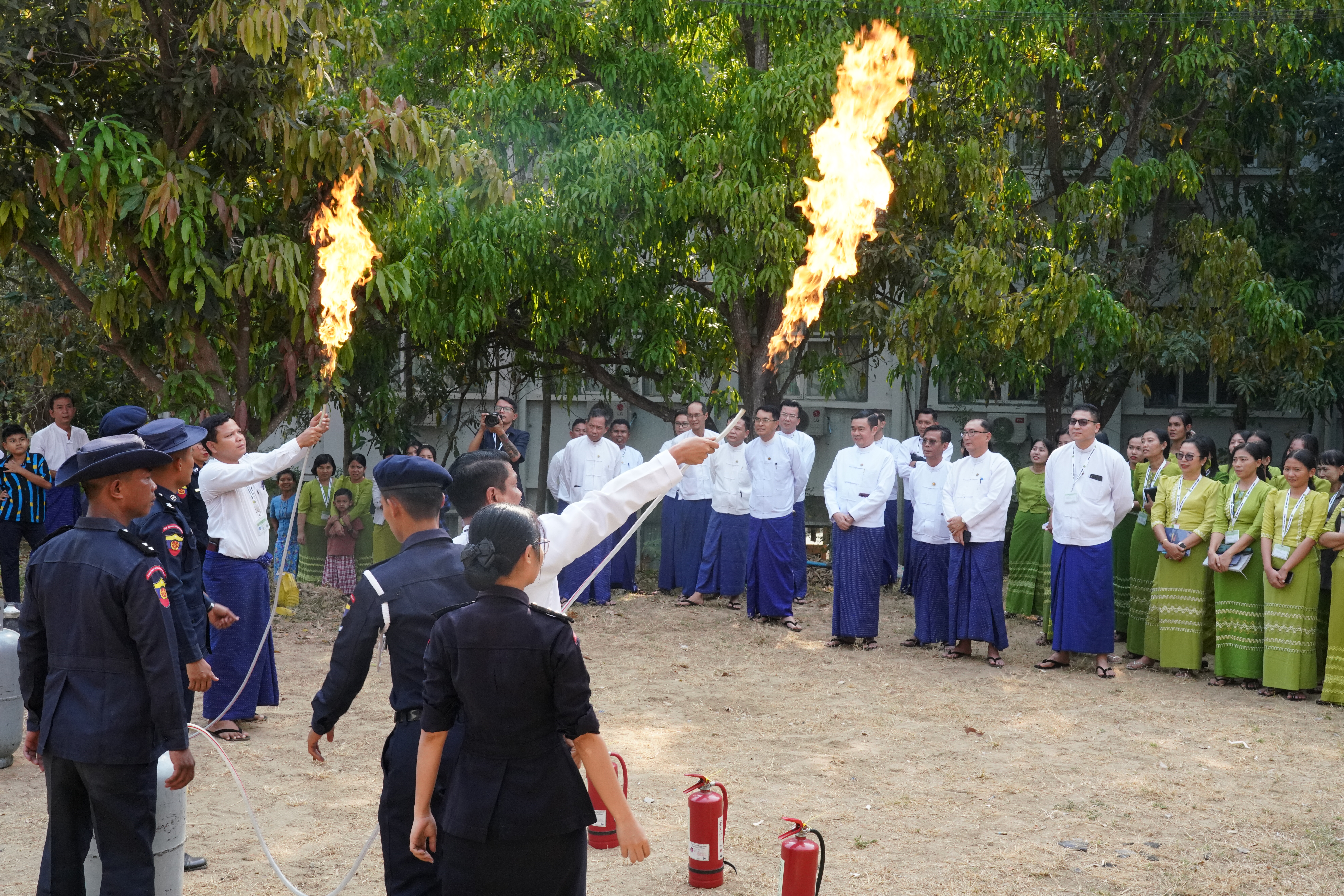 အခမ်းအနားတွင် ဒုတိယဝန်ကြီး ဦးဖြိုးဇော်စိုးက အဖွင့်အမှာစကားပြောကြားပြီး မြန်မာနိုင်ငံ မီးသတ်တပ်ဖွဲ့ မီးသတ်ဦးစီးဌာမှ တာဝန်ရှိသူတစ်ဦးက မီးလောင်မှုအခြေခံသဘောတရားများ၊ မီးဘေးကြိုတင်ကာကွယ် ရေးနှင့် ရှောင်ကျဉ်ရမည့်အချက်များ၊ မီးငြှိမ်းသတ်ရေးဆိုင်ရာလုပ်ငန်းစဉ်များ၊ မီးငြှိမ်းသတ်ရာတွင် တွေ့ကြုံရသည့် အတွေ့အကြုံများကို ရှင်းလင်းပြောကြားသည်။