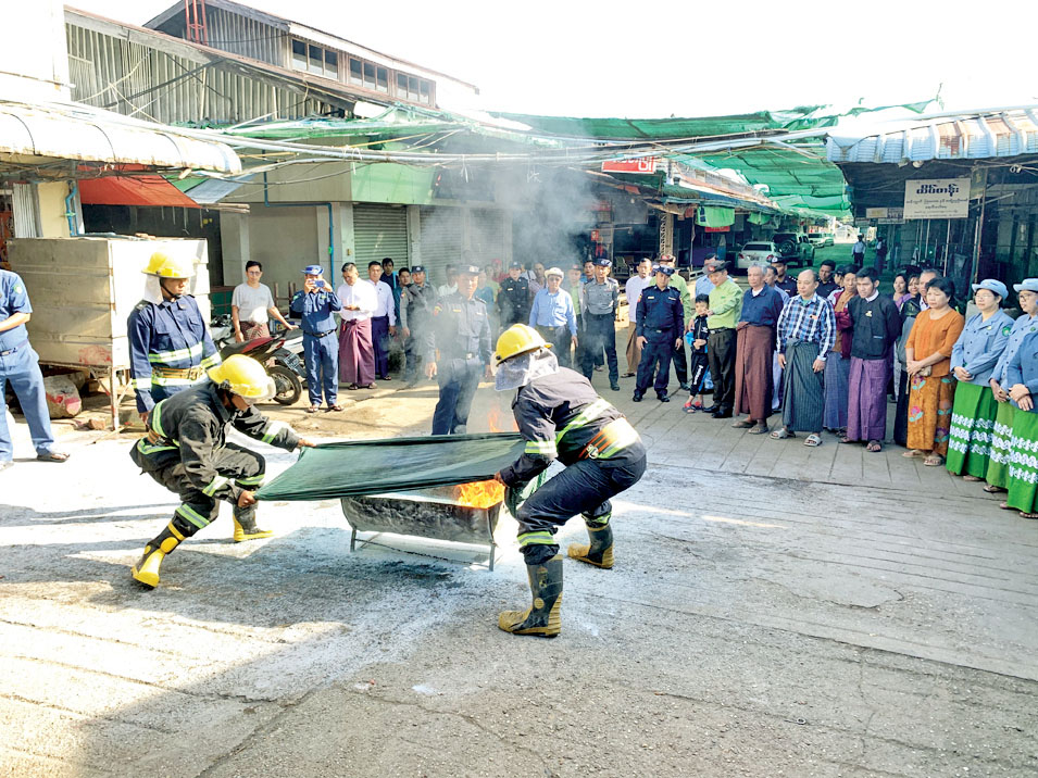 ဟင်္သာတမြို့နယ်အတွင်းရှိ ဈေးများတွင် မီးဘေးအန္တရာယ် ကြိုတင်ကာကွယ်ရေးအတွက် ခရိုင်စီမံခန့်ခွဲရေးနှင့် အုပ်ချုပ်ရေးကော်မတီဥက္ကဋ္ဌ ဦးလှိုင်ထွန်းနှင့် အဖွဲ့ဝင်များ၊ မြို့နယ်ဥက္ကဋ္ဌ ဦးအောင်ဇော်မင်းနှင့် အဖွဲ့ဝင်များ၊ စည်ပင်သာယာရေးအဖွဲ့မှ အမှုဆောင်အရာရှိ ဦးသက်အောင်နှင့် ဝန်ထမ်းများ၊ ခရိုင်မီးသတ်ဦးစီးမှူး ဦးဟိန်းသူဟန်နှင့် တပ်ဖွဲ့ဝင်များ၊ စျေးကော်မတီဥက္ကဋ္ဌ ဦးတင်ထွန်းနှင့်အဖွဲ့ဝင်များ၊ ဈေးအရန် မီးသတ်တပ်ဖွဲ့ဝင်များ ပူးပေါင်း၍ မီးဘေးအန္တရာယ် ကြိုတင် ကာကွယ်ရေးအတွက် အသင့်ပြင်ဆင်ထားရှိမှုများ၊ ဈေးအတွင်းရှိ မီးသတ်ရေလှောင်ကန်များ၊ မီးသတ်ပိုက်များ၊ ရေစုပ်စက်များ၊ ရေပိုက်ခေါင်းများ အသင့်ပြင်ဆင်ထားရှိမှုတို့ကို ဈေးရုံများအတွင်း လှည့်လည်စစ်ဆေးကြည့်ရှုခဲ့ကြသည်။ ထို့နောက် မြို့နယ်မီးသတ်ဦးစီးမှူး ဦးဥက္ကာနှင့် မီးသတ်တပ်ဖွဲ့ဝင်များက မီးသတ်ဆေးဘူး အသုံးပြုပုံအား ရှင်းလင်းပြောကြားခြင်း၊ ဆီမီးလောင်မှုအား မီးသတ်ဆေးဘူး အသုံးပြု၍ မီးငြှိမ်းသတ်မှုများ၊ အရေးပေါ်မီးငြှိမ်းသတ်ခြင်း နည်းလမ်းများနှင့် မီးသတ်ပိုက်များ အသုံးပြုပုံ၊ မီးသတ်ယာဉ်ဖြင့် မီးငြှိမ်းသတ်မှုများကို လက်တွေ့ သရုပ်ပြဇာတ်တိုက်လေ့ကျင့်ခဲ့ကြကြောင်း သိရသည်။
