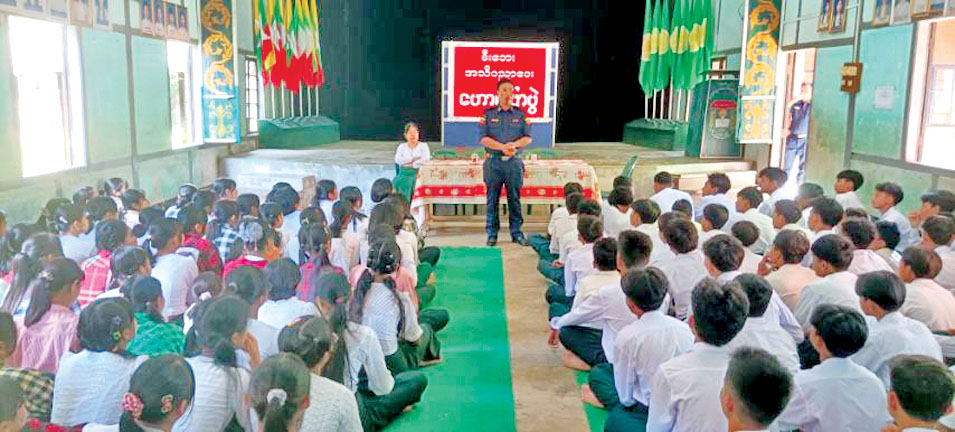ဧရာဝတီတိုင်းဒေသကြီး ဟင်္သာတမြို့နယ် မီးသတ်ဦးစီးဌာနက စာသင်ကျောင်းအခြေပြု မီးဘေးအန္တရာယ် ကြိုတင်ကာကွယ်ရေးနှင့် မီးဘေးအန္တရာယ် သရုပ်ပြဇာတ်တိုက်လေ့ကျင့်ခြင်းကို ယနေ့နံနက်ပိုင်းတွင် ဟင်္သာတမြို့ တာငါးဆယ်မြောက်ရပ်ကွက် အမှတ်(၂)အခြေခံပညာ အထက်တန်းကျောင်းခန်းမ၌ ပြုလုပ်သည်။
