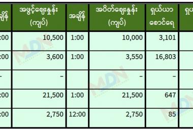 Home Jan 7,2026 |09:48 | ပြည်တွင်း ပြည်ထောင်စုသမ္မတမြန်မာနိုင်ငံတော် ယာယီသမ္မတ နိုင်ငံတော်လုံခြုံရေးနှင့် အေးချမ်းသာယာရေးကော်မရှင် ဥက္ကဋ္ဌ ဗိုလ်ချုပ်မှူးကြီး မင်းအောင်လှိုင်ထံ အာဆီယံဥက္ကဋ္ဌ၏ မြန်မာနိုင်ငံဆိုင်ရာ အထူးကိုယ်စားလှယ် ဖိလစ်ပိုင်နိုင်ငံခြားရေးဝန်ကြီး ဦးဆောင်သည့် ကိုယ်စားလှယ်အဖွဲ့ Jan 6,2026 |02:16 | အားကစား မန်ယူက ရူဘင်အမ်မိုရင်ကို နည်းပြအဖြစ်မှ ထုတ်ပယ်လိုက်ပြီ Jan 6,2026 |11:00 | စီးပွားရေး ၂၀၂၅ ခုနှစ်အတွင်း ကမ္ဘောဒီးယားနိုင်ငံ၏ ဆန်တင်ပို့မှု ၂၀၂၄ ခုနှစ်ကထက် ၄၆ ရာခိုင်နှုန်းတိုးလာ Jan 6,2026 |10:54 | စီးပွားရေး လျှပ်စစ်သုံးမော်တော်ယာဉ်များ ရန်ကုန်ဆိပ်ကမ်းသို့ရောက်ရှိ Jan 6,2026 |10:48 | ပြည်တွင်း ပြည်ထောင်စုဝန်ကြီး Jeng Phang နော်တောင် မန္တလေးငလျင်ကြောင့် ထိခိုက်ပျက်စီးခဲ့သည့် ရွှေကြာပင်အားကစားကွင်းနှင့် မိုးလုံလေလုံအားကစားရုံ ပြန်လည်ပြုပြင်ခြင်းလုပ်ငန်း ဆောင်ရွက်နေမှုများ ကြည့်ရှုစစ်ဆေး Jan 6,2026 |10:25 | ပြည်တွင်း ၂၀၂၅ ခုနှစ် ပါတီစုံဒီမိုကရေစီအထွေထွေရွေးကောက်ပွဲ ပြည်သူ့လွှတ်တော်ကိုယ်စားလှယ်လောင်းတစ်ဦးချင်း ဆန္ဒမဲရရှိမှုအခြေအနေ Jan 6,2026 |10:22 | ပြည်တွင်း တိုင်းဒေသကြီးလွှတ်တော် သို့မဟုတ် ပြည်နယ်လွှတ်တော်ကိုယ်စားလှယ်အဖြစ် ရွေးကောက်တင်မြေှာက်ခံရသူများအမည်စာရင်းကြေညာ Jan 6,2026 |10:20 | ပြည်တွင်း ပြည်ထောင်စုသမ္မတမြန်မာနိုင်ငံတော်၏ (၇၈)နှစ်မြောက် လွတ်လပ်ရေးနေ့အတွက် ပြည်ပနိုင်ငံအသီးသီးမှ နိုင်ငံ့အကြီးအကဲများက ဝမ်းမြောက်ကြောင်းသဝဏ်လွှာများပေးပို့ Jan 6,2026 |10:19 | အားကစား ရီးယဲလ်မက်ဒရစ်အသင်းက ရီးယဲလ်ဘတ်တစ်ကို ငါးဂိုး-တစ်ဂိုးဖြင့် အနိုင်ရတိုက်စစ်မှူး ဂွန်ဇာလိုဂါစီယာ ပထမဆုံး လာလီဂါဟက်ထရစ်ဂိုး သွင်းယူ Jan 6,2026 |10:17 | ပြည်တွင်း အမျိုးသားလွှတ်တော်ကိုယ်စားလှယ်အဖြစ် ရွေးကောက်တင်မြှောက်ခံရသူများ အမည်စာရင်းကြေညာ Jan 6,2026 |10:14 | အားကစား မြန်မာအမျိုးသမီးလိဂ်တွင် မြဝတီအသင်းနှင့် Young Lionesses အသင်း သရေကျ Jan 5,2026 |02:07 | အားကစား ဩစတြေးလျအိုးပင်းတွင် နာမည်ကြီး ဗီးနပ်ဝီလျံ ပါဝင်ယှဉ်ပြိုင်ကစားမည် Jan 5,2026 |02:05 | အားကစား မန်ယူက လိဒ်စ်ကို ခြေစွမ်းအသာဖြင့်ကစားနိုင်ခဲ့သော်လည်း သရေရလဒ်ဖြင့် ကျေနပ်ခဲ့ရ Jan 5,2026 |01:46 | ယဉ်ကျေးမှုနှင့် ခရီးသွား ကမ္ဘောဒီးယားနိုင်ငံရှိ အန်ကောဝပ် ၂၀၂၅ ခုနှစ်အတွင်း တရုတ်ခရီးသွားဧည့်သည် ၈၀၀၀၀ ကျော် အား ဆွဲဆောင် Jan 5,2026 |01:44 | နိုင်ငံတကာ ပါကစ္စတန်၏ ပြည်တွင်းထုတ်ခရုစ်ဒုံးကျည် မြေပြင်၊ ပင်လယ်ပြင်ပစ်မှတ်များကို တိကျစွာပစ်ခတ်နိုင်ဟုဆို ၂၀၂၅ ခုနှစ် ပါတီစုံဒီမိုကရေစီ အထွေထွေရွေးကောက်ပွဲ ကျင်းပရန် 00 Days 00 Hours 00 Minutes 00 Seconds နောက်ဆုံးရသတင်းများ ပေါင်းတည်မြို့နယ်၌ နိုင်ငံသားစိစစ်ရေးကတ်များ နေ့ချင်းပြီးဆောင်ရွက်ပေးလျက်ရှိ Jan 07 မင်းလှမြို့နယ်၌ မ