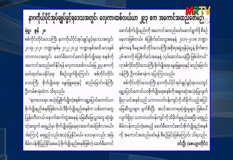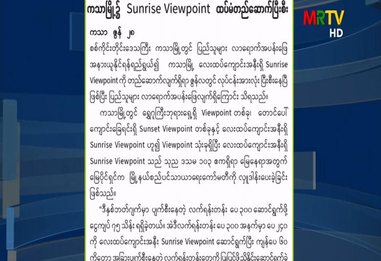 Home Dec 30,2025 |01:08 | စီးပွားရေး ၂၀၂၅ ခုနှစ်တွင် ဆူဒန်နိုင်ငံ၏ ရွှေထုတ်လုပ်မှု တန်ချိန် ၇၀ အထိ ရောက်ရှိ Dec 30,2025 |11:05 | အားကစား အီတလီစီးရီးအေတွင် အင်တာမီလန် အမှတ်ပေးဇယားကို ပြန်လည်ဦးဆောင် Dec 30,2025 |10:53 | အားကစား အာဆီယံ ယူ-၁၆ ဖူဆယ်ချန်ပီယံရှစ်ပြိုင်ပွဲတွင် မြန်မာအသင်း ဗီယက်နမ်ကို ရှုံးကြွေးပြန်ဆပ်ပြီး တတိယဆုရရှိ Dec 30,2025 |10:25 | ပြည်တွင်း ဒီဇင်ဘာ ခရစ္စမတ်ရုံးပိတ်ရက်ကာလအတွင်း တောင်ကြီး-ပေါမူ၊ ပေါမူ-တောင်ကြီး ရှုခင်းကြည့် Sight Seeing ရထားခရီးစဉ် ခရီးသည်စီးနင်းမှုများပြား Dec 30,2025 |09:43 | ပြည်တွင်း ပြည်ထောင်စုသမ္မတ မြန်မာနိုင်ငံတော် ယာယီသမ္မတ နိုင်ငံတော်လုံခြုံရေးနှင့် အေးချမ်းသာယာရေး ကော်မရှင်ဥက္ကဋ္ဌ ဗိုလ်ချုပ်မှူးကြီးမင်းအောင်လှိုင်ထံ ရုရှားဖက်ဒရေးရှင်းနိုင်ငံ ဒူးမားလွှတ်တော် ဒုတိယဥက္ကဋ္ဌ ဦးဆောင်သည့် ကိုယ်စားလှယ်အဖွဲ့က လာရောက်ဂါရဝပြုတွေ့ဆုံ Dec 29,2025 |03:28 | အားကစား နိုင်ဂျီးရီးယားက တူနီးရှားကို အနိုင်ယူပြီး အာဖရိကနိုင်ငံများဖလား ၁၆ သင်းအဆင့်တက် Dec 29,2025 |03:25 | အားကစား ဩစတြေးလျအိုးပင်းပြိုင်ပွဲကို ဒဏ်ရာကြောင့် ဒရေပါ လွဲချော်ဖွယ်ရှိ Dec 29,2025 |02:00 | အားကစား အက်စ်တွန်ဗီလာက ချယ်ဆီးကို အနိုင်ယူပြီး ပြိုင်ပွဲစုံ ၁၁ ပွဲဆက် နိုင်ပွဲရရှိလာ Dec 29,2025 |11:12 | နိုင်ငံတကာ ကာဂျစ္စတန်နိုင်ငံ၌ အမှိုက်မှ လျှပ်စစ်ဓာတ်အားထုတ်လွှတ်ရေးစက်ရုံ စတင်ဖွင့်လှစ် Dec 29,2025 |11:07 | နိုင်ငံတကာ အိန္ဒိယနိုင်ငံမြို့တော် နယူးဒေလီ၌ နှစ်သစ်ကူးကာလအတွင်း ရာဇ၀တ်မှုများအား တားဆီးနှိမ်နင်း Dec 29,2025 |11:04 | နိုင်ငံတကာ ဗင်နီဇွဲလားသမ္မတ နီကိုးလပ်စ်မာဒူရိုက အမေရိကန်သမ္မတနှင့် တွေ့ဆုံဆွေးနွေးရန် ဆန္ဒရှိ Dec 29,2025 |10:49 | ပြည်တွင်း ၂၀၂၅ ခုနှစ် ပါတီစုံဒီမိုကရေစီ အထွေထွေရွေးကောက်ပွဲကျင်းပနေမှု နိုင်ငံတကာနှင့် ပြည်တွင်းအခြေစိုက် နိုင်ငံခြားသံရုံးများမှ ရွေးကောက်ပွဲစောင့်ကြည့်လေ့လာသူများ လှည့်လည်ကြည့်ရှုလေ့လာ Dec 29,2025 |10:44 | တွေ့ဆုံ မေးမြန်းခန်း ပြည်သူတွေက အခုလို စိတ်အားထက်သန်စွာ မဲပေးနေတာ နိုင်ငံကို ပိုမိုကောင်းမွန်စေလိုတဲ့ စိတ်ဆန္ဒရှိတယ်ဆိုတာ တွေ့ရပါတယ် Dec 29,2025 |10:43 | အားကစား မြန်မာအမျိုးသမီးလိဂ်တွင် ရှမ်းယူနိုက်တက်အသင်း နိုင်ပွဲဆက် Dec 29,2025 |10:43 | ပြည်တွင်း ပြည်ထောင်စုသမ္မတမြန်မာနိုင်ငံတော် နိုင်ငံတော်ယာယီသမ္မတ နိုင်ငံတော်လုံခြုံရေးနှင့် အေးချမ်းသာယာရေးကော်မရှင် ဥက္ကဋ္ဌ ဗိုလ်ချုပ်မှူးကြီး မင်းအောင်လှိုင် နေပြည်တော်ဘူတာကြီးသို့ သွားရောက်ကြည့်ရှုစစ်ဆေး ၂၀၂၅ ခုနှစ် ပါတီစုံဒီမိုကရေစီ အထွေထွေရွေးကောက်ပွဲ ကျင်းပရန် 00 Days 00 Hours 00 Minutes 00 Seconds နောက်ဆုံးရသတင်းများ ဂျပန်နိုင်ငံ၌ ၂၀၂၅ ခုနှစ် ဧပြီလမှ အောက်တိုဘာလအထိ ဖမ်းဆီးရမိသောဝက်ဝံအရေအတွက်စံချိန်တင်များပြား Dec 30 ၂၀၂၅ ခုနှစ်တွင် ဆူဒ