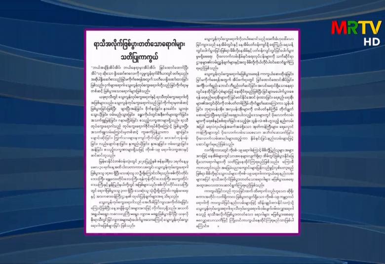Home Dec 30,2025 |01:08 | စီးပွားရေး ၂၀၂၅ ခုနှစ်တွင် ဆူဒန်နိုင်ငံ၏ ရွှေထုတ်လုပ်မှု တန်ချိန် ၇၀ အထိ ရောက်ရှိ Dec 30,2025 |11:05 | အားကစား အီတလီစီးရီးအေတွင် အင်တာမီလန် အမှတ်ပေးဇယားကို ပြန်လည်ဦးဆောင် Dec 30,2025 |10:53 | အားကစား အာဆီယံ ယူ-၁၆ ဖူဆယ်ချန်ပီယံရှစ်ပြိုင်ပွဲတွင် မြန်မာအသင်း ဗီယက်နမ်ကို ရှုံးကြွေးပြန်ဆပ်ပြီး တတိယဆုရရှိ Dec 30,2025 |10:25 | ပြည်တွင်း ဒီဇင်ဘာ ခရစ္စမတ်ရုံးပိတ်ရက်ကာလအတွင်း တောင်ကြီး-ပေါမူ၊ ပေါမူ-တောင်ကြီး ရှုခင်းကြည့် Sight Seeing ရထားခရီးစဉ် ခရီးသည်စီးနင်းမှုများပြား Dec 30,2025 |09:43 | ပြည်တွင်း ပြည်ထောင်စုသမ္မတ မြန်မာနိုင်ငံတော် ယာယီသမ္မတ နိုင်ငံတော်လုံခြုံရေးနှင့် အေးချမ်းသာယာရေး ကော်မရှင်ဥက္ကဋ္ဌ ဗိုလ်ချုပ်မှူးကြီးမင်းအောင်လှိုင်ထံ ရုရှားဖက်ဒရေးရှင်းနိုင်ငံ ဒူးမားလွှတ်တော် ဒုတိယဥက္ကဋ္ဌ ဦးဆောင်သည့် ကိုယ်စားလှယ်အဖွဲ့က လာရောက်ဂါရဝပြုတွေ့ဆုံ Dec 29,2025 |03:28 | အားကစား နိုင်ဂျီးရီးယားက တူနီးရှားကို အနိုင်ယူပြီး အာဖရိကနိုင်ငံများဖလား ၁၆ သင်းအဆင့်တက် Dec 29,2025 |03:25 | အားကစား ဩစတြေးလျအိုးပင်းပြိုင်ပွဲကို ဒဏ်ရာကြောင့် ဒရေပါ လွဲချော်ဖွယ်ရှိ Dec 29,2025 |02:00 | အားကစား အက်စ်တွန်ဗီလာက ချယ်ဆီးကို အနိုင်ယူပြီး ပြိုင်ပွဲစုံ ၁၁ ပွဲဆက် နိုင်ပွဲရရှိလာ Dec 29,2025 |11:12 | နိုင်ငံတကာ ကာဂျစ္စတန်နိုင်ငံ၌ အမှိုက်မှ လျှပ်စစ်ဓာတ်အားထုတ်လွှတ်ရေးစက်ရုံ စတင်ဖွင့်လှစ် Dec 29,2025 |11:07 | နိုင်ငံတကာ အိန္ဒိယနိုင်ငံမြို့တော် နယူးဒေလီ၌ နှစ်သစ်ကူးကာလအတွင်း ရာဇ၀တ်မှုများအား တားဆီးနှိမ်နင်း Dec 29,2025 |11:04 | နိုင်ငံတကာ ဗင်နီဇွဲလားသမ္မတ နီကိုးလပ်စ်မာဒူရိုက အမေရိကန်သမ္မတနှင့် တွေ့ဆုံဆွေးနွေးရန် ဆန္ဒရှိ Dec 29,2025 |10:49 | ပြည်တွင်း ၂၀၂၅ ခုနှစ် ပါတီစုံဒီမိုကရေစီ အထွေထွေရွေးကောက်ပွဲကျင်းပနေမှု နိုင်ငံတကာနှင့် ပြည်တွင်းအခြေစိုက် နိုင်ငံခြားသံရုံးများမှ ရွေးကောက်ပွဲစောင့်ကြည့်လေ့လာသူများ လှည့်လည်ကြည့်ရှုလေ့လာ Dec 29,2025 |10:44 | တွေ့ဆုံ မေးမြန်းခန်း ပြည်သူတွေက အခုလို စိတ်အားထက်သန်စွာ မဲပေးနေတာ နိုင်ငံကို ပိုမိုကောင်းမွန်စေလိုတဲ့ စိတ်ဆန္ဒရှိတယ်ဆိုတာ တွေ့ရပါတယ် Dec 29,2025 |10:43 | အားကစား မြန်မာအမျိုးသမီးလိဂ်တွင် ရှမ်းယူနိုက်တက်အသင်း နိုင်ပွဲဆက် Dec 29,2025 |10:43 | ပြည်တွင်း ပြည်ထောင်စုသမ္မတမြန်မာနိုင်ငံတော် နိုင်ငံတော်ယာယီသမ္မတ နိုင်ငံတော်လုံခြုံရေးနှင့် အေးချမ်းသာယာရေးကော်မရှင် ဥက္ကဋ္ဌ ဗိုလ်ချုပ်မှူးကြီး မင်းအောင်လှိုင် နေပြည်တော်ဘူတာကြီးသို့ သွားရောက်ကြည့်ရှုစစ်ဆေး ၂၀၂၅ ခုနှစ် ပါတီစုံဒီမိုကရေစီ အထွေထွေရွေးကောက်ပွဲ ကျင်းပရန် 00 Days 00 Hours 00 Minutes 00 Seconds နောက်ဆုံးရသတင်းများ ဂျပန်နိုင်ငံ၌ ၂၀၂၅ ခုနှစ် ဧပြီလမှ အောက်တိုဘာလအထိ ဖမ်းဆီးရမိသောဝက်ဝံအရေအတွက်စံချိန်တင်များပြား Dec 30 ၂၀၂၅ ခုနှစ်တွင် ဆူဒ
