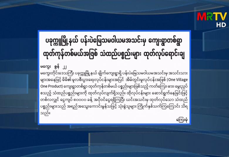 Home Dec 30,2025 |01:08 | စီးပွားရေး ၂၀၂၅ ခုနှစ်တွင် ဆူဒန်နိုင်ငံ၏ ရွှေထုတ်လုပ်မှု တန်ချိန် ၇၀ အထိ ရောက်ရှိ Dec 30,2025 |11:05 | အားကစား အီတလီစီးရီးအေတွင် အင်တာမီလန် အမှတ်ပေးဇယားကို ပြန်လည်ဦးဆောင် Dec 30,2025 |10:53 | အားကစား အာဆီယံ ယူ-၁၆ ဖူဆယ်ချန်ပီယံရှစ်ပြိုင်ပွဲတွင် မြန်မာအသင်း ဗီယက်နမ်ကို ရှုံးကြွေးပြန်ဆပ်ပြီး တတိယဆုရရှိ Dec 30,2025 |10:25 | ပြည်တွင်း ဒီဇင်ဘာ ခရစ္စမတ်ရုံးပိတ်ရက်ကာလအတွင်း တောင်ကြီး-ပေါမူ၊ ပေါမူ-တောင်ကြီး ရှုခင်းကြည့် Sight Seeing ရထားခရီးစဉ် ခရီးသည်စီးနင်းမှုများပြား Dec 30,2025 |09:43 | ပြည်တွင်း ပြည်ထောင်စုသမ္မတ မြန်မာနိုင်ငံတော် ယာယီသမ္မတ နိုင်ငံတော်လုံခြုံရေးနှင့် အေးချမ်းသာယာရေး ကော်မရှင်ဥက္ကဋ္ဌ ဗိုလ်ချုပ်မှူးကြီးမင်းအောင်လှိုင်ထံ ရုရှားဖက်ဒရေးရှင်းနိုင်ငံ ဒူးမားလွှတ်တော် ဒုတိယဥက္ကဋ္ဌ ဦးဆောင်သည့် ကိုယ်စားလှယ်အဖွဲ့က လာရောက်ဂါရဝပြုတွေ့ဆုံ Dec 29,2025 |03:28 | အားကစား နိုင်ဂျီးရီးယားက တူနီးရှားကို အနိုင်ယူပြီး အာဖရိကနိုင်ငံများဖလား ၁၆ သင်းအဆင့်တက် Dec 29,2025 |03:25 | အားကစား ဩစတြေးလျအိုးပင်းပြိုင်ပွဲကို ဒဏ်ရာကြောင့် ဒရေပါ လွဲချော်ဖွယ်ရှိ Dec 29,2025 |02:00 | အားကစား အက်စ်တွန်ဗီလာက ချယ်ဆီးကို အနိုင်ယူပြီး ပြိုင်ပွဲစုံ ၁၁ ပွဲဆက် နိုင်ပွဲရရှိလာ Dec 29,2025 |11:12 | နိုင်ငံတကာ ကာဂျစ္စတန်နိုင်ငံ၌ အမှိုက်မှ လျှပ်စစ်ဓာတ်အားထုတ်လွှတ်ရေးစက်ရုံ စတင်ဖွင့်လှစ် Dec 29,2025 |11:07 | နိုင်ငံတကာ အိန္ဒိယနိုင်ငံမြို့တော် နယူးဒေလီ၌ နှစ်သစ်ကူးကာလအတွင်း ရာဇ၀တ်မှုများအား တားဆီးနှိမ်နင်း Dec 29,2025 |11:04 | နိုင်ငံတကာ ဗင်နီဇွဲလားသမ္မတ နီကိုးလပ်စ်မာဒူရိုက အမေရိကန်သမ္မတနှင့် တွေ့ဆုံဆွေးနွေးရန် ဆန္ဒရှိ Dec 29,2025 |10:49 | ပြည်တွင်း ၂၀၂၅ ခုနှစ် ပါတီစုံဒီမိုကရေစီ အထွေထွေရွေးကောက်ပွဲကျင်းပနေမှု နိုင်ငံတကာနှင့် ပြည်တွင်းအခြေစိုက် နိုင်ငံခြားသံရုံးများမှ ရွေးကောက်ပွဲစောင့်ကြည့်လေ့လာသူများ လှည့်လည်ကြည့်ရှုလေ့လာ Dec 29,2025 |10:44 | တွေ့ဆုံ မေးမြန်းခန်း ပြည်သူတွေက အခုလို စိတ်အားထက်သန်စွာ မဲပေးနေတာ နိုင်ငံကို ပိုမိုကောင်းမွန်စေလိုတဲ့ စိတ်ဆန္ဒရှိတယ်ဆိုတာ တွေ့ရပါတယ် Dec 29,2025 |10:43 | အားကစား မြန်မာအမျိုးသမီးလိဂ်တွင် ရှမ်းယူနိုက်တက်အသင်း နိုင်ပွဲဆက် Dec 29,2025 |10:43 | ပြည်တွင်း ပြည်ထောင်စုသမ္မတမြန်မာနိုင်ငံတော် နိုင်ငံတော်ယာယီသမ္မတ နိုင်ငံတော်လုံခြုံရေးနှင့် အေးချမ်းသာယာရေးကော်မရှင် ဥက္ကဋ္ဌ ဗိုလ်ချုပ်မှူးကြီး မင်းအောင်လှိုင် နေပြည်တော်ဘူတာကြီးသို့ သွားရောက်ကြည့်ရှုစစ်ဆေး ၂၀၂၅ ခုနှစ် ပါတီစုံဒီမိုကရေစီ အထွေထွေရွေးကောက်ပွဲ ကျင်းပရန် 00 Days 00 Hours 00 Minutes 00 Seconds နောက်ဆုံးရသတင်းများ ဂျပန်နိုင်ငံ၌ ၂၀၂၅ ခုနှစ် ဧပြီလမှ အောက်တိုဘာလအထိ ဖမ်းဆီးရမိသောဝက်ဝံအရေအတွက်စံချိန်တင်များပြား Dec 30 ၂၀၂၅ ခုနှစ်တွင် ဆူဒ