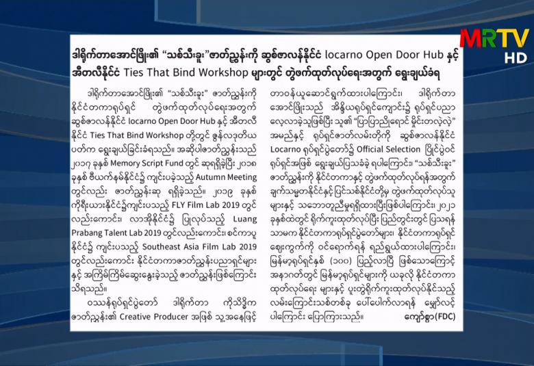 Home Dec 30,2025 |01:08 | စီးပွားရေး ၂၀၂၅ ခုနှစ်တွင် ဆူဒန်နိုင်ငံ၏ ရွှေထုတ်လုပ်မှု တန်ချိန် ၇၀ အထိ ရောက်ရှိ Dec 30,2025 |11:05 | အားကစား အီတလီစီးရီးအေတွင် အင်တာမီလန် အမှတ်ပေးဇယားကို ပြန်လည်ဦးဆောင် Dec 30,2025 |10:53 | အားကစား အာဆီယံ ယူ-၁၆ ဖူဆယ်ချန်ပီယံရှစ်ပြိုင်ပွဲတွင် မြန်မာအသင်း ဗီယက်နမ်ကို ရှုံးကြွေးပြန်ဆပ်ပြီး တတိယဆုရရှိ Dec 30,2025 |10:25 | ပြည်တွင်း ဒီဇင်ဘာ ခရစ္စမတ်ရုံးပိတ်ရက်ကာလအတွင်း တောင်ကြီး-ပေါမူ၊ ပေါမူ-တောင်ကြီး ရှုခင်းကြည့် Sight Seeing ရထားခရီးစဉ် ခရီးသည်စီးနင်းမှုများပြား Dec 30,2025 |09:43 | ပြည်တွင်း ပြည်ထောင်စုသမ္မတ မြန်မာနိုင်ငံတော် ယာယီသမ္မတ နိုင်ငံတော်လုံခြုံရေးနှင့် အေးချမ်းသာယာရေး ကော်မရှင်ဥက္ကဋ္ဌ ဗိုလ်ချုပ်မှူးကြီးမင်းအောင်လှိုင်ထံ ရုရှားဖက်ဒရေးရှင်းနိုင်ငံ ဒူးမားလွှတ်တော် ဒုတိယဥက္ကဋ္ဌ ဦးဆောင်သည့် ကိုယ်စားလှယ်အဖွဲ့က လာရောက်ဂါရဝပြုတွေ့ဆုံ Dec 29,2025 |03:28 | အားကစား နိုင်ဂျီးရီးယားက တူနီးရှားကို အနိုင်ယူပြီး အာဖရိကနိုင်ငံများဖလား ၁၆ သင်းအဆင့်တက် Dec 29,2025 |03:25 | အားကစား ဩစတြေးလျအိုးပင်းပြိုင်ပွဲကို ဒဏ်ရာကြောင့် ဒရေပါ လွဲချော်ဖွယ်ရှိ Dec 29,2025 |02:00 | အားကစား အက်စ်တွန်ဗီလာက ချယ်ဆီးကို အနိုင်ယူပြီး ပြိုင်ပွဲစုံ ၁၁ ပွဲဆက် နိုင်ပွဲရရှိလာ Dec 29,2025 |11:12 | နိုင်ငံတကာ ကာဂျစ္စတန်နိုင်ငံ၌ အမှိုက်မှ လျှပ်စစ်ဓာတ်အားထုတ်လွှတ်ရေးစက်ရုံ စတင်ဖွင့်လှစ် Dec 29,2025 |11:07 | နိုင်ငံတကာ အိန္ဒိယနိုင်ငံမြို့တော် နယူးဒေလီ၌ နှစ်သစ်ကူးကာလအတွင်း ရာဇ၀တ်မှုများအား တားဆီးနှိမ်နင်း Dec 29,2025 |11:04 | နိုင်ငံတကာ ဗင်နီဇွဲလားသမ္မတ နီကိုးလပ်စ်မာဒူရိုက အမေရိကန်သမ္မတနှင့် တွေ့ဆုံဆွေးနွေးရန် ဆန္ဒရှိ Dec 29,2025 |10:49 | ပြည်တွင်း ၂၀၂၅ ခုနှစ် ပါတီစုံဒီမိုကရေစီ အထွေထွေရွေးကောက်ပွဲကျင်းပနေမှု နိုင်ငံတကာနှင့် ပြည်တွင်းအခြေစိုက် နိုင်ငံခြားသံရုံးများမှ ရွေးကောက်ပွဲစောင့်ကြည့်လေ့လာသူများ လှည့်လည်ကြည့်ရှုလေ့လာ Dec 29,2025 |10:44 | တွေ့ဆုံ မေးမြန်းခန်း ပြည်သူတွေက အခုလို စိတ်အားထက်သန်စွာ မဲပေးနေတာ နိုင်ငံကို ပိုမိုကောင်းမွန်စေလိုတဲ့ စိတ်ဆန္ဒရှိတယ်ဆိုတာ တွေ့ရပါတယ် Dec 29,2025 |10:43 | အားကစား မြန်မာအမျိုးသမီးလိဂ်တွင် ရှမ်းယူနိုက်တက်အသင်း နိုင်ပွဲဆက် Dec 29,2025 |10:43 | ပြည်တွင်း ပြည်ထောင်စုသမ္မတမြန်မာနိုင်ငံတော် နိုင်ငံတော်ယာယီသမ္မတ နိုင်ငံတော်လုံခြုံရေးနှင့် အေးချမ်းသာယာရေးကော်မရှင် ဥက္ကဋ္ဌ ဗိုလ်ချုပ်မှူးကြီး မင်းအောင်လှိုင် နေပြည်တော်ဘူတာကြီးသို့ သွားရောက်ကြည့်ရှုစစ်ဆေး ၂၀၂၅ ခုနှစ် ပါတီစုံဒီမိုကရေစီ အထွေထွေရွေးကောက်ပွဲ ကျင်းပရန် 00 Days 00 Hours 00 Minutes 00 Seconds နောက်ဆုံးရသတင်းများ ဂျပန်နိုင်ငံ၌ ၂၀၂၅ ခုနှစ် ဧပြီလမှ အောက်တိုဘာလအထိ ဖမ်းဆီးရမိသောဝက်ဝံအရေအတွက်စံချိန်တင်များပြား Dec 30 ၂၀၂၅ ခုနှစ်တွင် ဆူဒ