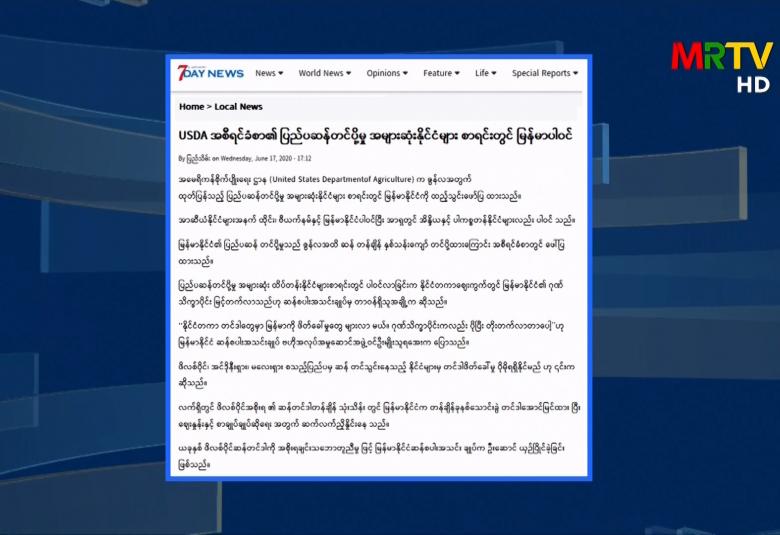 Home Dec 30,2025 |01:08 | စီးပွားရေး ၂၀၂၅ ခုနှစ်တွင် ဆူဒန်နိုင်ငံ၏ ရွှေထုတ်လုပ်မှု တန်ချိန် ၇၀ အထိ ရောက်ရှိ Dec 30,2025 |11:05 | အားကစား အီတလီစီးရီးအေတွင် အင်တာမီလန် အမှတ်ပေးဇယားကို ပြန်လည်ဦးဆောင် Dec 30,2025 |10:53 | အားကစား အာဆီယံ ယူ-၁၆ ဖူဆယ်ချန်ပီယံရှစ်ပြိုင်ပွဲတွင် မြန်မာအသင်း ဗီယက်နမ်ကို ရှုံးကြွေးပြန်ဆပ်ပြီး တတိယဆုရရှိ Dec 30,2025 |10:25 | ပြည်တွင်း ဒီဇင်ဘာ ခရစ္စမတ်ရုံးပိတ်ရက်ကာလအတွင်း တောင်ကြီး-ပေါမူ၊ ပေါမူ-တောင်ကြီး ရှုခင်းကြည့် Sight Seeing ရထားခရီးစဉ် ခရီးသည်စီးနင်းမှုများပြား Dec 30,2025 |09:43 | ပြည်တွင်း ပြည်ထောင်စုသမ္မတ မြန်မာနိုင်ငံတော် ယာယီသမ္မတ နိုင်ငံတော်လုံခြုံရေးနှင့် အေးချမ်းသာယာရေး ကော်မရှင်ဥက္ကဋ္ဌ ဗိုလ်ချုပ်မှူးကြီးမင်းအောင်လှိုင်ထံ ရုရှားဖက်ဒရေးရှင်းနိုင်ငံ ဒူးမားလွှတ်တော် ဒုတိယဥက္ကဋ္ဌ ဦးဆောင်သည့် ကိုယ်စားလှယ်အဖွဲ့က လာရောက်ဂါရဝပြုတွေ့ဆုံ Dec 29,2025 |03:28 | အားကစား နိုင်ဂျီးရီးယားက တူနီးရှားကို အနိုင်ယူပြီး အာဖရိကနိုင်ငံများဖလား ၁၆ သင်းအဆင့်တက် Dec 29,2025 |03:25 | အားကစား ဩစတြေးလျအိုးပင်းပြိုင်ပွဲကို ဒဏ်ရာကြောင့် ဒရေပါ လွဲချော်ဖွယ်ရှိ Dec 29,2025 |02:00 | အားကစား အက်စ်တွန်ဗီလာက ချယ်ဆီးကို အနိုင်ယူပြီး ပြိုင်ပွဲစုံ ၁၁ ပွဲဆက် နိုင်ပွဲရရှိလာ Dec 29,2025 |11:12 | နိုင်ငံတကာ ကာဂျစ္စတန်နိုင်ငံ၌ အမှိုက်မှ လျှပ်စစ်ဓာတ်အားထုတ်လွှတ်ရေးစက်ရုံ စတင်ဖွင့်လှစ် Dec 29,2025 |11:07 | နိုင်ငံတကာ အိန္ဒိယနိုင်ငံမြို့တော် နယူးဒေလီ၌ နှစ်သစ်ကူးကာလအတွင်း ရာဇ၀တ်မှုများအား တားဆီးနှိမ်နင်း Dec 29,2025 |11:04 | နိုင်ငံတကာ ဗင်နီဇွဲလားသမ္မတ နီကိုးလပ်စ်မာဒူရိုက အမေရိကန်သမ္မတနှင့် တွေ့ဆုံဆွေးနွေးရန် ဆန္ဒရှိ Dec 29,2025 |10:49 | ပြည်တွင်း ၂၀၂၅ ခုနှစ် ပါတီစုံဒီမိုကရေစီ အထွေထွေရွေးကောက်ပွဲကျင်းပနေမှု နိုင်ငံတကာနှင့် ပြည်တွင်းအခြေစိုက် နိုင်ငံခြားသံရုံးများမှ ရွေးကောက်ပွဲစောင့်ကြည့်လေ့လာသူများ လှည့်လည်ကြည့်ရှုလေ့လာ Dec 29,2025 |10:44 | တွေ့ဆုံ မေးမြန်းခန်း ပြည်သူတွေက အခုလို စိတ်အားထက်သန်စွာ မဲပေးနေတာ နိုင်ငံကို ပိုမိုကောင်းမွန်စေလိုတဲ့ စိတ်ဆန္ဒရှိတယ်ဆိုတာ တွေ့ရပါတယ် Dec 29,2025 |10:43 | အားကစား မြန်မာအမျိုးသမီးလိဂ်တွင် ရှမ်းယူနိုက်တက်အသင်း နိုင်ပွဲဆက် Dec 29,2025 |10:43 | ပြည်တွင်း ပြည်ထောင်စုသမ္မတမြန်မာနိုင်ငံတော် နိုင်ငံတော်ယာယီသမ္မတ နိုင်ငံတော်လုံခြုံရေးနှင့် အေးချမ်းသာယာရေးကော်မရှင် ဥက္ကဋ္ဌ ဗိုလ်ချုပ်မှူးကြီး မင်းအောင်လှိုင် နေပြည်တော်ဘူတာကြီးသို့ သွားရောက်ကြည့်ရှုစစ်ဆေး ၂၀၂၅ ခုနှစ် ပါတီစုံဒီမိုကရေစီ အထွေထွေရွေးကောက်ပွဲ ကျင်းပရန် 00 Days 00 Hours 00 Minutes 00 Seconds နောက်ဆုံးရသတင်းများ ဂျပန်နိုင်ငံ၌ ၂၀၂၅ ခုနှစ် ဧပြီလမှ အောက်တိုဘာလအထိ ဖမ်းဆီးရမိသောဝက်ဝံအရေအတွက်စံချိန်တင်များပြား Dec 30 ၂၀၂၅ ခုနှစ်တွင် ဆူဒ
