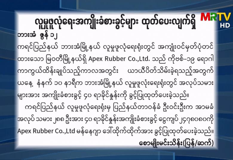 Home Dec 30,2025 |01:08 | စီးပွားရေး ၂၀၂၅ ခုနှစ်တွင် ဆူဒန်နိုင်ငံ၏ ရွှေထုတ်လုပ်မှု တန်ချိန် ၇၀ အထိ ရောက်ရှိ Dec 30,2025 |11:05 | အားကစား အီတလီစီးရီးအေတွင် အင်တာမီလန် အမှတ်ပေးဇယားကို ပြန်လည်ဦးဆောင် Dec 30,2025 |10:53 | အားကစား အာဆီယံ ယူ-၁၆ ဖူဆယ်ချန်ပီယံရှစ်ပြိုင်ပွဲတွင် မြန်မာအသင်း ဗီယက်နမ်ကို ရှုံးကြွေးပြန်ဆပ်ပြီး တတိယဆုရရှိ Dec 30,2025 |10:25 | ပြည်တွင်း ဒီဇင်ဘာ ခရစ္စမတ်ရုံးပိတ်ရက်ကာလအတွင်း တောင်ကြီး-ပေါမူ၊ ပေါမူ-တောင်ကြီး ရှုခင်းကြည့် Sight Seeing ရထားခရီးစဉ် ခရီးသည်စီးနင်းမှုများပြား Dec 30,2025 |09:43 | ပြည်တွင်း ပြည်ထောင်စုသမ္မတ မြန်မာနိုင်ငံတော် ယာယီသမ္မတ နိုင်ငံတော်လုံခြုံရေးနှင့် အေးချမ်းသာယာရေး ကော်မရှင်ဥက္ကဋ္ဌ ဗိုလ်ချုပ်မှူးကြီးမင်းအောင်လှိုင်ထံ ရုရှားဖက်ဒရေးရှင်းနိုင်ငံ ဒူးမားလွှတ်တော် ဒုတိယဥက္ကဋ္ဌ ဦးဆောင်သည့် ကိုယ်စားလှယ်အဖွဲ့က လာရောက်ဂါရဝပြုတွေ့ဆုံ Dec 29,2025 |03:28 | အားကစား နိုင်ဂျီးရီးယားက တူနီးရှားကို အနိုင်ယူပြီး အာဖရိကနိုင်ငံများဖလား ၁၆ သင်းအဆင့်တက် Dec 29,2025 |03:25 | အားကစား ဩစတြေးလျအိုးပင်းပြိုင်ပွဲကို ဒဏ်ရာကြောင့် ဒရေပါ လွဲချော်ဖွယ်ရှိ Dec 29,2025 |02:00 | အားကစား အက်စ်တွန်ဗီလာက ချယ်ဆီးကို အနိုင်ယူပြီး ပြိုင်ပွဲစုံ ၁၁ ပွဲဆက် နိုင်ပွဲရရှိလာ Dec 29,2025 |11:12 | နိုင်ငံတကာ ကာဂျစ္စတန်နိုင်ငံ၌ အမှိုက်မှ လျှပ်စစ်ဓာတ်အားထုတ်လွှတ်ရေးစက်ရုံ စတင်ဖွင့်လှစ် Dec 29,2025 |11:07 | နိုင်ငံတကာ အိန္ဒိယနိုင်ငံမြို့တော် နယူးဒေလီ၌ နှစ်သစ်ကူးကာလအတွင်း ရာဇ၀တ်မှုများအား တားဆီးနှိမ်နင်း Dec 29,2025 |11:04 | နိုင်ငံတကာ ဗင်နီဇွဲလားသမ္မတ နီကိုးလပ်စ်မာဒူရိုက အမေရိကန်သမ္မတနှင့် တွေ့ဆုံဆွေးနွေးရန် ဆန္ဒရှိ Dec 29,2025 |10:49 | ပြည်တွင်း ၂၀၂၅ ခုနှစ် ပါတီစုံဒီမိုကရေစီ အထွေထွေရွေးကောက်ပွဲကျင်းပနေမှု နိုင်ငံတကာနှင့် ပြည်တွင်းအခြေစိုက် နိုင်ငံခြားသံရုံးများမှ ရွေးကောက်ပွဲစောင့်ကြည့်လေ့လာသူများ လှည့်လည်ကြည့်ရှုလေ့လာ Dec 29,2025 |10:44 | တွေ့ဆုံ မေးမြန်းခန်း ပြည်သူတွေက အခုလို စိတ်အားထက်သန်စွာ မဲပေးနေတာ နိုင်ငံကို ပိုမိုကောင်းမွန်စေလိုတဲ့ စိတ်ဆန္ဒရှိတယ်ဆိုတာ တွေ့ရပါတယ် Dec 29,2025 |10:43 | အားကစား မြန်မာအမျိုးသမီးလိဂ်တွင် ရှမ်းယူနိုက်တက်အသင်း နိုင်ပွဲဆက် Dec 29,2025 |10:43 | ပြည်တွင်း ပြည်ထောင်စုသမ္မတမြန်မာနိုင်ငံတော် နိုင်ငံတော်ယာယီသမ္မတ နိုင်ငံတော်လုံခြုံရေးနှင့် အေးချမ်းသာယာရေးကော်မရှင် ဥက္ကဋ္ဌ ဗိုလ်ချုပ်မှူးကြီး မင်းအောင်လှိုင် နေပြည်တော်ဘူတာကြီးသို့ သွားရောက်ကြည့်ရှုစစ်ဆေး ၂၀၂၅ ခုနှစ် ပါတီစုံဒီမိုကရေစီ အထွေထွေရွေးကောက်ပွဲ ကျင်းပရန် 00 Days 00 Hours 00 Minutes 00 Seconds နောက်ဆုံးရသတင်းများ ဂျပန်နိုင်ငံ၌ ၂၀၂၅ ခုနှစ် ဧပြီလမှ အောက်တိုဘာလအထိ ဖမ်းဆီးရမိသောဝက်ဝံအရေအတွက်စံချိန်တင်များပြား Dec 30 ၂၀၂၅ ခုနှစ်တွင် ဆူဒ