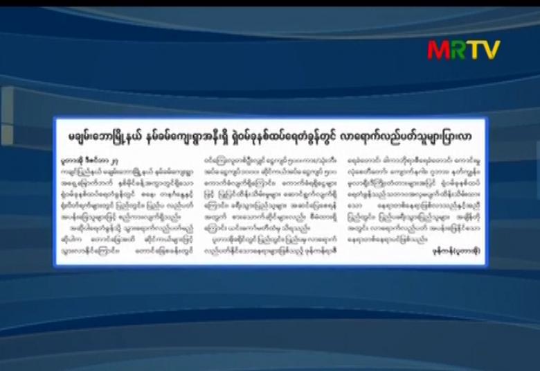 Home Dec 28,2025 |02:49 | နိုင်ငံတကာ ဂျာမနီနိုင်ငံ၌ ကလေးများ လူမှုကွန်ရက်မီဒီယာအသုံးပြုခွင့်ပိတ်ပင်ရေးကို လက်ခံသွားဖွယ်ရှိဟု ဒစ်ဂျစ်တယ်ဝန်ကြီးပြောကြား Dec 28,2025 |02:48 | နိုင်ငံတကာ ဆိုးရွားသည့် ရာသီဥတုအခြေအနေများ ဖြစ်ပေါ်နေချိန် တောင်တက်ခရီးတက်ခဲ့ကြသည့် ဂရိတောင်တက်သမားလေးဦးကို သေဆုံးလျက်တွေ့ရှိ Dec 28,2025 |12:32 | အာဆီယံ သတင်း နယ်စပ်ပဋိပက္ခများ အဆုံးသတ်ရေး ထိုင်းနှင့် ကမ္ဘောဒီးယားနိုင်ငံတို့ အပစ်အခတ်ရပ်စဲရေး သဘောတူညီချက်သစ် လက်မှတ်ရေးထိုး Dec 28,2025 |12:19 | အားကစား အာဆီယံ ယူ-၁၆ ဖူဆယ်ချန်ပီယံရှစ်ပြိုင်ပွဲ အုပ်စုပွဲစဉ်များပြီးဆုံးပြီး မြန်မာအသင်း တတိယလုပွဲ ကစားခွင့်ရရှိ Dec 28,2025 |12:14 | မှုခင်း KK Park နယ်မြေအတွင်း အွန်လိုင်းလိမ်လည်လောင်းကစားမှု ကျူးလွန်ရာတွင် အသုံးပြုသည့် တရားမဝင် အဆောက်အအုံ ၅၀၉ လုံးကို စနစ်တကျဖြိုချဖျက်ဆီးပြီးစီး Dec 28,2025 |12:08 | ပြည်တွင်း ပွဲကောက်ရေတံခွန်အပန်းဖြေစခန်း (BE.FALLS) သို့ လာရောက်လည်ပတ်သည့် ဧည့်သည် ဝင်ရောက်မှု သုံးသန်းပြည့် အမှတ်တရဂုဏ်ပြုလက်ဆောင်များ ပေးအပ် Dec 28,2025 |12:04 | ပြည်တွင်း မန္တလေးငလျင်ကြီးကြောင့် ထိခိုက်ပျက်စီးခဲ့သော ဆင်သေရေလွှဲဆည်ကို ဘူမိအနေအထား တည်ငြိမ်မှုရှိသည့် သရက်ကွင်းကျေးရွာအနီး၌ အသစ်ပြန်လည်တည်ဆောက် Dec 28,2025 |11:57 | ပြည်တွင်း ပြည်ထောင်စုရွေးကောက်ပွဲကော်မရှင်အဖွဲ့ဝင် ဦးမျိုးလှိုင် ကာဇက်စတန်နိုင်ငံ ဗဟိုရွေးကောက်ပွဲ ကော်မရှင် ဒုတိယဥက္ကဋ္ဌအား လက်ခံတွေ့ဆုံ Dec 28,2025 |11:21 | ပြည်တွင်း ပြည်ထောင်စုရွေးကောက်ပွဲကော်မရှင်ဥက္ကဋ္ဌ ဦးသန်းစိုး ရုရှားဖက်ဒရေးရှင်းနိုင်ငံ ဗဟိုရွေးကောက်ပွဲ ကော်မရှင် အဖွဲ့ဝင်အား လက်ခံတွေ့ဆုံ Dec 28,2025 |11:17 | ပြည်တွင်း ၂၀၂၅ ခုနှစ် ပါတီစုံဒီမိုကရေစီ အထွေထွေရွေးကောက်ပွဲ နိုင်ငံတကာရွေးကောက်ပွဲ စောင့်ကြည့်လေ့လာသူများအား ကြိုဆိုနှုတ်ခွန်းဆက်စကား ပြောကြားပြီး ရွေးကောက်ပွဲဆိုင်ရာ ရှင်းလင်းဆွေးနွေး Dec 28,2025 |10:52 | ပြည်တွင်း ပြည်ထောင်စုဝန်ကြီးဦးသန်းဆွေ တရုတ်နိုင်ငံခြားရေးဝန်ကြီးဌာန အာရှရေးရာအထူးကိုယ်စားလှယ်အား လက်ခံတွေ့ဆုံ Dec 28,2025 |10:36 | ပြည်တွင်း အမျိုးသားကာကွယ်ရေးနှင့် လုံခြုံရေးကောင်စီရုံးအမှုဆောင်ချုပ် ဦးအောင်လင်းဒွေး မြန်မာနိုင်ငံဆိုင်ရာ နီကာရာဂွါ သံအမတ်ကြီး H.E.Mr. Mario Jose Armengol Campos အား လက်ခံတွေ့ဆုံ Dec 27,2025 |12:49 | ပြည်တွင်း သပိတ်ကျင်းမြို့နယ် သာသနာနွယ်ဝင်သီလရှင်များနှင့် ဒေသခံပြည်သူများအား ကျန်းမာရေး စောင့်ရှောက်မှုလုပ်ငန်းများ ဆောင်ရွက် Dec 27,2025 |12:41 | နည်းပညာ လွှတ်တင်မှုမအောင်မြင်ခဲ့သော အိတ်ချ် ၃ ဒုံးပျံ လေးနာရီအတွင်း ကမ္ဘာ့လေထုအတွင်း ပြန်လည်ဝင်ရောက်မည် Dec 27,2025 |12:37 | နိုင်ငံတကာ အီဂျစ်နိုင်ငံ၌ ငါးထပ်အဆောက်အအုံပြိုကျမှုဖြစ်ပွားရာ ရှစ်ဦးသေဆုံး ၂၀၂၅ ခုနှစ် ပါတီစုံဒီမိုက