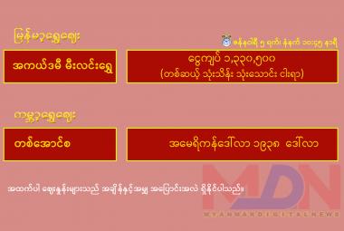 Home Dec 28,2025 |02:49 | နိုင်ငံတကာ ဂျာမနီနိုင်ငံ၌ ကလေးများ လူမှုကွန်ရက်မီဒီယာအသုံးပြုခွင့်ပိတ်ပင်ရေးကို လက်ခံသွားဖွယ်ရှိဟု ဒစ်ဂျစ်တယ်ဝန်ကြီးပြောကြား Dec 28,2025 |02:48 | နိုင်ငံတကာ ဆိုးရွားသည့် ရာသီဥတုအခြေအနေများ ဖြစ်ပေါ်နေချိန် တောင်တက်ခရီးတက်ခဲ့ကြသည့် ဂရိတောင်တက်သမားလေးဦးကို သေဆုံးလျက်တွေ့ရှိ Dec 28,2025 |12:32 | အာဆီယံ သတင်း နယ်စပ်ပဋိပက္ခများ အဆုံးသတ်ရေး ထိုင်းနှင့် ကမ္ဘောဒီးယားနိုင်ငံတို့ အပစ်အခတ်ရပ်စဲရေး သဘောတူညီချက်သစ် လက်မှတ်ရေးထိုး Dec 28,2025 |12:19 | အားကစား အာဆီယံ ယူ-၁၆ ဖူဆယ်ချန်ပီယံရှစ်ပြိုင်ပွဲ အုပ်စုပွဲစဉ်များပြီးဆုံးပြီး မြန်မာအသင်း တတိယလုပွဲ ကစားခွင့်ရရှိ Dec 28,2025 |12:14 | မှုခင်း KK Park နယ်မြေအတွင်း အွန်လိုင်းလိမ်လည်လောင်းကစားမှု ကျူးလွန်ရာတွင် အသုံးပြုသည့် တရားမဝင် အဆောက်အအုံ ၅၀၉ လုံးကို စနစ်တကျဖြိုချဖျက်ဆီးပြီးစီး Dec 28,2025 |12:08 | ပြည်တွင်း ပွဲကောက်ရေတံခွန်အပန်းဖြေစခန်း (BE.FALLS) သို့ လာရောက်လည်ပတ်သည့် ဧည့်သည် ဝင်ရောက်မှု သုံးသန်းပြည့် အမှတ်တရဂုဏ်ပြုလက်ဆောင်များ ပေးအပ် Dec 28,2025 |12:04 | ပြည်တွင်း မန္တလေးငလျင်ကြီးကြောင့် ထိခိုက်ပျက်စီးခဲ့သော ဆင်သေရေလွှဲဆည်ကို ဘူမိအနေအထား တည်ငြိမ်မှုရှိသည့် သရက်ကွင်းကျေးရွာအနီး၌ အသစ်ပြန်လည်တည်ဆောက် Dec 28,2025 |11:57 | ပြည်တွင်း ပြည်ထောင်စုရွေးကောက်ပွဲကော်မရှင်အဖွဲ့ဝင် ဦးမျိုးလှိုင် ကာဇက်စတန်နိုင်ငံ ဗဟိုရွေးကောက်ပွဲ ကော်မရှင် ဒုတိယဥက္ကဋ္ဌအား လက်ခံတွေ့ဆုံ Dec 28,2025 |11:21 | ပြည်တွင်း ပြည်ထောင်စုရွေးကောက်ပွဲကော်မရှင်ဥက္ကဋ္ဌ ဦးသန်းစိုး ရုရှားဖက်ဒရေးရှင်းနိုင်ငံ ဗဟိုရွေးကောက်ပွဲ ကော်မရှင် အဖွဲ့ဝင်အား လက်ခံတွေ့ဆုံ Dec 28,2025 |11:17 | ပြည်တွင်း ၂၀၂၅ ခုနှစ် ပါတီစုံဒီမိုကရေစီ အထွေထွေရွေးကောက်ပွဲ နိုင်ငံတကာရွေးကောက်ပွဲ စောင့်ကြည့်လေ့လာသူများအား ကြိုဆိုနှုတ်ခွန်းဆက်စကား ပြောကြားပြီး ရွေးကောက်ပွဲဆိုင်ရာ ရှင်းလင်းဆွေးနွေး Dec 28,2025 |10:52 | ပြည်တွင်း ပြည်ထောင်စုဝန်ကြီးဦးသန်းဆွေ တရုတ်နိုင်ငံခြားရေးဝန်ကြီးဌာန အာရှရေးရာအထူးကိုယ်စားလှယ်အား လက်ခံတွေ့ဆုံ Dec 28,2025 |10:36 | ပြည်တွင်း အမျိုးသားကာကွယ်ရေးနှင့် လုံခြုံရေးကောင်စီရုံးအမှုဆောင်ချုပ် ဦးအောင်လင်းဒွေး မြန်မာနိုင်ငံဆိုင်ရာ နီကာရာဂွါ သံအမတ်ကြီး H.E.Mr. Mario Jose Armengol Campos အား လက်ခံတွေ့ဆုံ Dec 27,2025 |12:49 | ပြည်တွင်း သပိတ်ကျင်းမြို့နယ် သာသနာနွယ်ဝင်သီလရှင်များနှင့် ဒေသခံပြည်သူများအား ကျန်းမာရေး စောင့်ရှောက်မှုလုပ်ငန်းများ ဆောင်ရွက် Dec 27,2025 |12:41 | နည်းပညာ လွှတ်တင်မှုမအောင်မြင်ခဲ့သော အိတ်ချ် ၃ ဒုံးပျံ လေးနာရီအတွင်း ကမ္ဘာ့လေထုအတွင်း ပြန်လည်ဝင်ရောက်မည် Dec 27,2025 |12:37 | နိုင်ငံတကာ အီဂျစ်နိုင်ငံ၌ ငါးထပ်အဆောက်အအုံပြိုကျမှုဖြစ်ပွားရာ ရှစ်ဦးသေဆုံး ၂၀၂၅ ခုနှစ် ပါတီစုံဒီမိုက