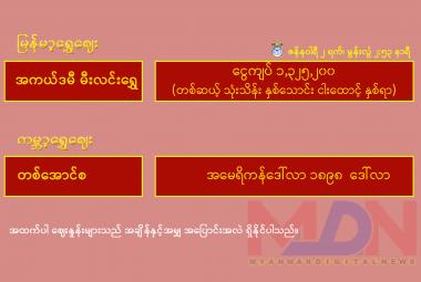 Home Dec 28,2025 |02:49 | နိုင်ငံတကာ ဂျာမနီနိုင်ငံ၌ ကလေးများ လူမှုကွန်ရက်မီဒီယာအသုံးပြုခွင့်ပိတ်ပင်ရေးကို လက်ခံသွားဖွယ်ရှိဟု ဒစ်ဂျစ်တယ်ဝန်ကြီးပြောကြား Dec 28,2025 |02:48 | နိုင်ငံတကာ ဆိုးရွားသည့် ရာသီဥတုအခြေအနေများ ဖြစ်ပေါ်နေချိန် တောင်တက်ခရီးတက်ခဲ့ကြသည့် ဂရိတောင်တက်သမားလေးဦးကို သေဆုံးလျက်တွေ့ရှိ Dec 28,2025 |12:32 | အာဆီယံ သတင်း နယ်စပ်ပဋိပက္ခများ အဆုံးသတ်ရေး ထိုင်းနှင့် ကမ္ဘောဒီးယားနိုင်ငံတို့ အပစ်အခတ်ရပ်စဲရေး သဘောတူညီချက်သစ် လက်မှတ်ရေးထိုး Dec 28,2025 |12:19 | အားကစား အာဆီယံ ယူ-၁၆ ဖူဆယ်ချန်ပီယံရှစ်ပြိုင်ပွဲ အုပ်စုပွဲစဉ်များပြီးဆုံးပြီး မြန်မာအသင်း တတိယလုပွဲ ကစားခွင့်ရရှိ Dec 28,2025 |12:14 | မှုခင်း KK Park နယ်မြေအတွင်း အွန်လိုင်းလိမ်လည်လောင်းကစားမှု ကျူးလွန်ရာတွင် အသုံးပြုသည့် တရားမဝင် အဆောက်အအုံ ၅၀၉ လုံးကို စနစ်တကျဖြိုချဖျက်ဆီးပြီးစီး Dec 28,2025 |12:08 | ပြည်တွင်း ပွဲကောက်ရေတံခွန်အပန်းဖြေစခန်း (BE.FALLS) သို့ လာရောက်လည်ပတ်သည့် ဧည့်သည် ဝင်ရောက်မှု သုံးသန်းပြည့် အမှတ်တရဂုဏ်ပြုလက်ဆောင်များ ပေးအပ် Dec 28,2025 |12:04 | ပြည်တွင်း မန္တလေးငလျင်ကြီးကြောင့် ထိခိုက်ပျက်စီးခဲ့သော ဆင်သေရေလွှဲဆည်ကို ဘူမိအနေအထား တည်ငြိမ်မှုရှိသည့် သရက်ကွင်းကျေးရွာအနီး၌ အသစ်ပြန်လည်တည်ဆောက် Dec 28,2025 |11:57 | ပြည်တွင်း ပြည်ထောင်စုရွေးကောက်ပွဲကော်မရှင်အဖွဲ့ဝင် ဦးမျိုးလှိုင် ကာဇက်စတန်နိုင်ငံ ဗဟိုရွေးကောက်ပွဲ ကော်မရှင် ဒုတိယဥက္ကဋ္ဌအား လက်ခံတွေ့ဆုံ Dec 28,2025 |11:21 | ပြည်တွင်း ပြည်ထောင်စုရွေးကောက်ပွဲကော်မရှင်ဥက္ကဋ္ဌ ဦးသန်းစိုး ရုရှားဖက်ဒရေးရှင်းနိုင်ငံ ဗဟိုရွေးကောက်ပွဲ ကော်မရှင် အဖွဲ့ဝင်အား လက်ခံတွေ့ဆုံ Dec 28,2025 |11:17 | ပြည်တွင်း ၂၀၂၅ ခုနှစ် ပါတီစုံဒီမိုကရေစီ အထွေထွေရွေးကောက်ပွဲ နိုင်ငံတကာရွေးကောက်ပွဲ စောင့်ကြည့်လေ့လာသူများအား ကြိုဆိုနှုတ်ခွန်းဆက်စကား ပြောကြားပြီး ရွေးကောက်ပွဲဆိုင်ရာ ရှင်းလင်းဆွေးနွေး Dec 28,2025 |10:52 | ပြည်တွင်း ပြည်ထောင်စုဝန်ကြီးဦးသန်းဆွေ တရုတ်နိုင်ငံခြားရေးဝန်ကြီးဌာန အာရှရေးရာအထူးကိုယ်စားလှယ်အား လက်ခံတွေ့ဆုံ Dec 28,2025 |10:36 | ပြည်တွင်း အမျိုးသားကာကွယ်ရေးနှင့် လုံခြုံရေးကောင်စီရုံးအမှုဆောင်ချုပ် ဦးအောင်လင်းဒွေး မြန်မာနိုင်ငံဆိုင်ရာ နီကာရာဂွါ သံအမတ်ကြီး H.E.Mr. Mario Jose Armengol Campos အား လက်ခံတွေ့ဆုံ Dec 27,2025 |12:49 | ပြည်တွင်း သပိတ်ကျင်းမြို့နယ် သာသနာနွယ်ဝင်သီလရှင်များနှင့် ဒေသခံပြည်သူများအား ကျန်းမာရေး စောင့်ရှောက်မှုလုပ်ငန်းများ ဆောင်ရွက် Dec 27,2025 |12:41 | နည်းပညာ လွှတ်တင်မှုမအောင်မြင်ခဲ့သော အိတ်ချ် ၃ ဒုံးပျံ လေးနာရီအတွင်း ကမ္ဘာ့လေထုအတွင်း ပြန်လည်ဝင်ရောက်မည် Dec 27,2025 |12:37 | နိုင်ငံတကာ အီဂျစ်နိုင်ငံ၌ ငါးထပ်အဆောက်အအုံပြိုကျမှုဖြစ်ပွားရာ ရှစ်ဦးသေဆုံး ၂၀၂၅ ခုနှစ် ပါတီစုံဒီမိုက