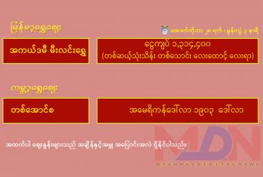 Home Dec 30,2025 |01:08 | စီးပွားရေး ၂၀၂၅ ခုနှစ်တွင် ဆူဒန်နိုင်ငံ၏ ရွှေထုတ်လုပ်မှု တန်ချိန် ၇၀ အထိ ရောက်ရှိ Dec 30,2025 |11:05 | အားကစား အီတလီစီးရီးအေတွင် အင်တာမီလန် အမှတ်ပေးဇယားကို ပြန်လည်ဦးဆောင် Dec 30,2025 |10:53 | အားကစား အာဆီယံ ယူ-၁၆ ဖူဆယ်ချန်ပီယံရှစ်ပြိုင်ပွဲတွင် မြန်မာအသင်း ဗီယက်နမ်ကို ရှုံးကြွေးပြန်ဆပ်ပြီး တတိယဆုရရှိ Dec 30,2025 |10:25 | ပြည်တွင်း ဒီဇင်ဘာ ခရစ္စမတ်ရုံးပိတ်ရက်ကာလအတွင်း တောင်ကြီး-ပေါမူ၊ ပေါမူ-တောင်ကြီး ရှုခင်းကြည့် Sight Seeing ရထားခရီးစဉ် ခရီးသည်စီးနင်းမှုများပြား Dec 30,2025 |09:43 | ပြည်တွင်း ပြည်ထောင်စုသမ္မတ မြန်မာနိုင်ငံတော် ယာယီသမ္မတ နိုင်ငံတော်လုံခြုံရေးနှင့် အေးချမ်းသာယာရေး ကော်မရှင်ဥက္ကဋ္ဌ ဗိုလ်ချုပ်မှူးကြီးမင်းအောင်လှိုင်ထံ ရုရှားဖက်ဒရေးရှင်းနိုင်ငံ ဒူးမားလွှတ်တော် ဒုတိယဥက္ကဋ္ဌ ဦးဆောင်သည့် ကိုယ်စားလှယ်အဖွဲ့က လာရောက်ဂါရဝပြုတွေ့ဆုံ Dec 29,2025 |03:28 | အားကစား နိုင်ဂျီးရီးယားက တူနီးရှားကို အနိုင်ယူပြီး အာဖရိကနိုင်ငံများဖလား ၁၆ သင်းအဆင့်တက် Dec 29,2025 |03:25 | အားကစား ဩစတြေးလျအိုးပင်းပြိုင်ပွဲကို ဒဏ်ရာကြောင့် ဒရေပါ လွဲချော်ဖွယ်ရှိ Dec 29,2025 |02:00 | အားကစား အက်စ်တွန်ဗီလာက ချယ်ဆီးကို အနိုင်ယူပြီး ပြိုင်ပွဲစုံ ၁၁ ပွဲဆက် နိုင်ပွဲရရှိလာ Dec 29,2025 |11:12 | နိုင်ငံတကာ ကာဂျစ္စတန်နိုင်ငံ၌ အမှိုက်မှ လျှပ်စစ်ဓာတ်အားထုတ်လွှတ်ရေးစက်ရုံ စတင်ဖွင့်လှစ် Dec 29,2025 |11:07 | နိုင်ငံတကာ အိန္ဒိယနိုင်ငံမြို့တော် နယူးဒေလီ၌ နှစ်သစ်ကူးကာလအတွင်း ရာဇ၀တ်မှုများအား တားဆီးနှိမ်နင်း Dec 29,2025 |11:04 | နိုင်ငံတကာ ဗင်နီဇွဲလားသမ္မတ နီကိုးလပ်စ်မာဒူရိုက အမေရိကန်သမ္မတနှင့် တွေ့ဆုံဆွေးနွေးရန် ဆန္ဒရှိ Dec 29,2025 |10:49 | ပြည်တွင်း ၂၀၂၅ ခုနှစ် ပါတီစုံဒီမိုကရေစီ အထွေထွေရွေးကောက်ပွဲကျင်းပနေမှု နိုင်ငံတကာနှင့် ပြည်တွင်းအခြေစိုက် နိုင်ငံခြားသံရုံးများမှ ရွေးကောက်ပွဲစောင့်ကြည့်လေ့လာသူများ လှည့်လည်ကြည့်ရှုလေ့လာ Dec 29,2025 |10:44 | တွေ့ဆုံ မေးမြန်းခန်း ပြည်သူတွေက အခုလို စိတ်အားထက်သန်စွာ မဲပေးနေတာ နိုင်ငံကို ပိုမိုကောင်းမွန်စေလိုတဲ့ စိတ်ဆန္ဒရှိတယ်ဆိုတာ တွေ့ရပါတယ် Dec 29,2025 |10:43 | အားကစား မြန်မာအမျိုးသမီးလိဂ်တွင် ရှမ်းယူနိုက်တက်အသင်း နိုင်ပွဲဆက် Dec 29,2025 |10:43 | ပြည်တွင်း ပြည်ထောင်စုသမ္မတမြန်မာနိုင်ငံတော် နိုင်ငံတော်ယာယီသမ္မတ နိုင်ငံတော်လုံခြုံရေးနှင့် အေးချမ်းသာယာရေးကော်မရှင် ဥက္ကဋ္ဌ ဗိုလ်ချုပ်မှူးကြီး မင်းအောင်လှိုင် နေပြည်တော်ဘူတာကြီးသို့ သွားရောက်ကြည့်ရှုစစ်ဆေး ၂၀၂၅ ခုနှစ် ပါတီစုံဒီမိုကရေစီ အထွေထွေရွေးကောက်ပွဲ ကျင်းပရန် 00 Days 00 Hours 00 Minutes 00 Seconds နောက်ဆုံးရသတင်းများ ဂျပန်နိုင်ငံ၌ ၂၀၂၅ ခုနှစ် ဧပြီလမှ အောက်တိုဘာလအထိ ဖမ်းဆီးရမိသောဝက်ဝံအရေအတွက်စံချိန်တင်များပြား Dec 30 ၂၀၂၅ ခုနှစ်တွင် ဆူဒ