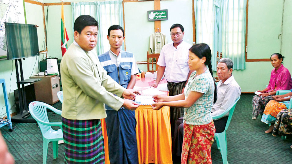စစ်ကိုင်းတိုင်းဒေသကြီး ဟုမ္မလင်းမြို့နယ်တွင် မိုးသည်းထန်စွာရွာသွန်းမှုကြောင့် ကမ်းပါးပြိုကျသဖြင့် ဒဏ်ရာရသူနှစ်ဦးနှင့် သေဆုံးသူ လေးဦးတို့အတွက် ထောက်ပံ့ငွေပေးအပ်ခြင်းကို စက်တင်ဘာ ၂၃ ရက်နံနက် ၁၁ နာရီက မြို့နယ်စီမံခန့်ခွဲရေးနှင့်အုပ်ချုပ်ရေးကော်မတီဥက္ကဋ္ဌရုံးခန်း၌ ကျင်းပသည်။