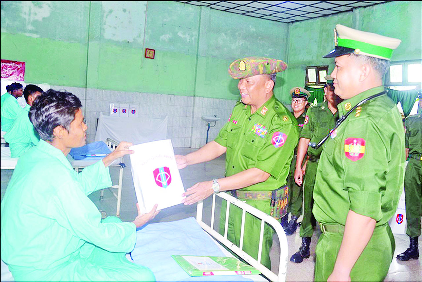 စစ်ကိုင်းတိုင်းဒေသကြီး ဟုမ္မလင်းမြို့ရှိ တပ်မတော်ဆေးရုံ၌ တက်ရောက်ကုသမှုခံယူလျက်ရှိသော သံဃာတော်များ၊ အရာရှိ၊ စစ်သည်၊ မိသားစုဝင်များ၊ မြန်မာနိုင်ငံရဲတပ်ဖွဲ့ဝင်များ၊ ပြည်သူ့စစ် (ဌာနေ) တပ်ဖွဲ့ဝင်များ၊ စစ်မှုထမ်းဟောင်းအဖွဲ့ဝင်များနှင့် ဒေသခံပြည်သူများအား ယနေ့တွင် အနောက်မြောက် တိုင်းစစ်ဌာနချုပ် တိုင်းမှူး ဗိုလ်မှူးချုပ် မျိုးမင်းထွေးနှင့် တာဝန်ရှိသူများက သွားရောက်ကြည့်ရှု၍ တစ်ဦးချင်း၏ ရောဂါဖြစ်ပွားမှု၊ ဆေးကုသပေးထားမှုနှင့် ကျန်းမာရေးတိုးတက်ကောင်းမွန်မှု အခြေအနေ များကို မေးမြန်းအားပေးစကားပြောကြားပြီး အာဟာရဖြည့်စားသောက်ဖွယ်ရာများပေးအပ်ကာ ဆေးရုံ အတွင်း လိုက်လံကြည့်ရှုစစ်ဆေးသည်။