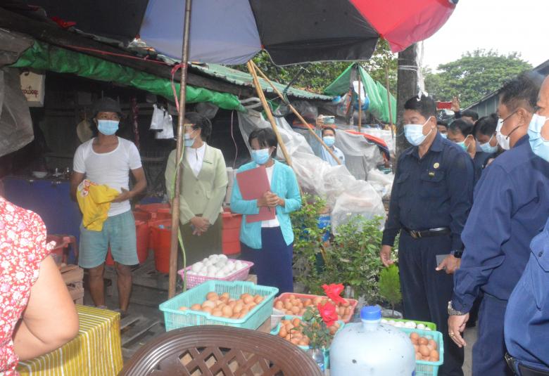 ထို့ပြင် တောင်ဥက္ကလာပမြို့နယ် (၁၄)ရပ်ကွက်၊ မေတ္တာလမ်းတွင် (Mobile Market) စနစ်ဖြင့် ဈေးရောင်းချပေးနေမှု၊ (၁၀)ရပ်ကွက် ပဒေသာစျေးအတွင်း စျေးရောင်း/စျေးဝယ် ပြုလုပ်နေမှု၊ ဗိုလ်တထောင်မြို့နယ် လေမှုတ်စက်ရုံဝင်းအတွင်း (Mobile Market) စနစ်ဖြင့် ဈေးရောင်းချပေးနေမှုတို့ကို ယနေ့နံနက်ပိုင်းက ရန်ကုန်မြို့တော် စည်ပင်သာယာရေးကော်မတီဥက္ကဋ္ဌ (မြို့တော်ဝန်) ဦးဗိုလ်ဌေးနှင့် တာဝန်ရှိသူများ သွားရောက်ကြည့်ရှုစစ်ဆေးခဲ့ပြီး ဈေးရောင်း/ဈေးဝယ်များနှင့် လမ်းတွင်သွားလာသူများကို Mask များ ဝေငှခဲ့ကြောင်း သိရသည်။
