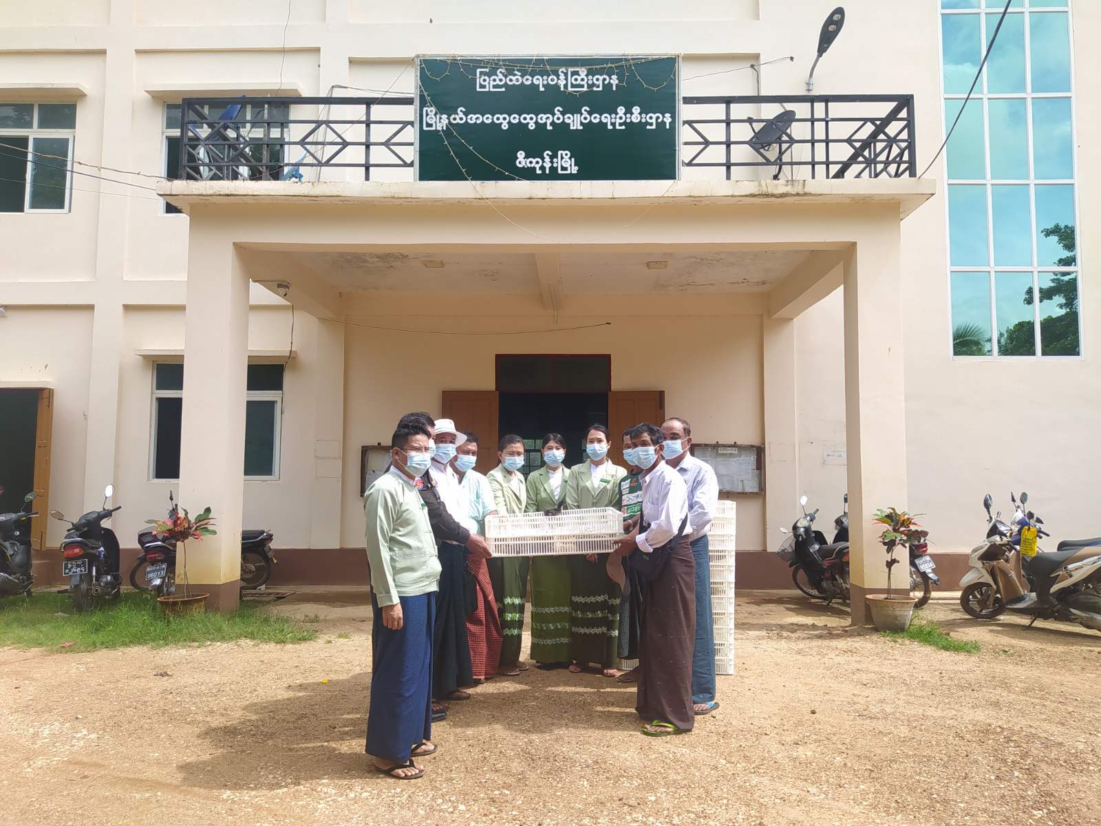 မြို့နယ်အထွေထွေအုပ်ချုပ်ရေးဦးစီးဌာန ဒုတိယမြိုနယ်အုပ်ချုပ်ရေးမှူး ဦးညီညီလတ်နှင့် မြို့နယ်စီမံ အုပ်ချုပ်ရေးအဖွဲ့ဝင်များ၊ မွေးမြူရေးနှင့်ကုသရေးဦးစီးမှူး ဒေါက်တာဇော်မင်းဦးတို့မှ သင်ကန် ကျေးရွာ အုပ်စုသို့ ဒေသကြက်အကောင်(၂၅၀)၊ မီးကောက်ပင်ကျေးရွာအုပ်စုသို့ အကောင်(၅၀၀)နှင့် ဘုရားပျိုကျေးရွာ အုပ်စုသို့ အကောင်(၂၅၀) အား မွေးမြူရေးလုပ်ကိုင်သူများ လက်ဝယ်အရောက် ဖြန့်ဖြူးပေးအပ်ခဲ့သည်။