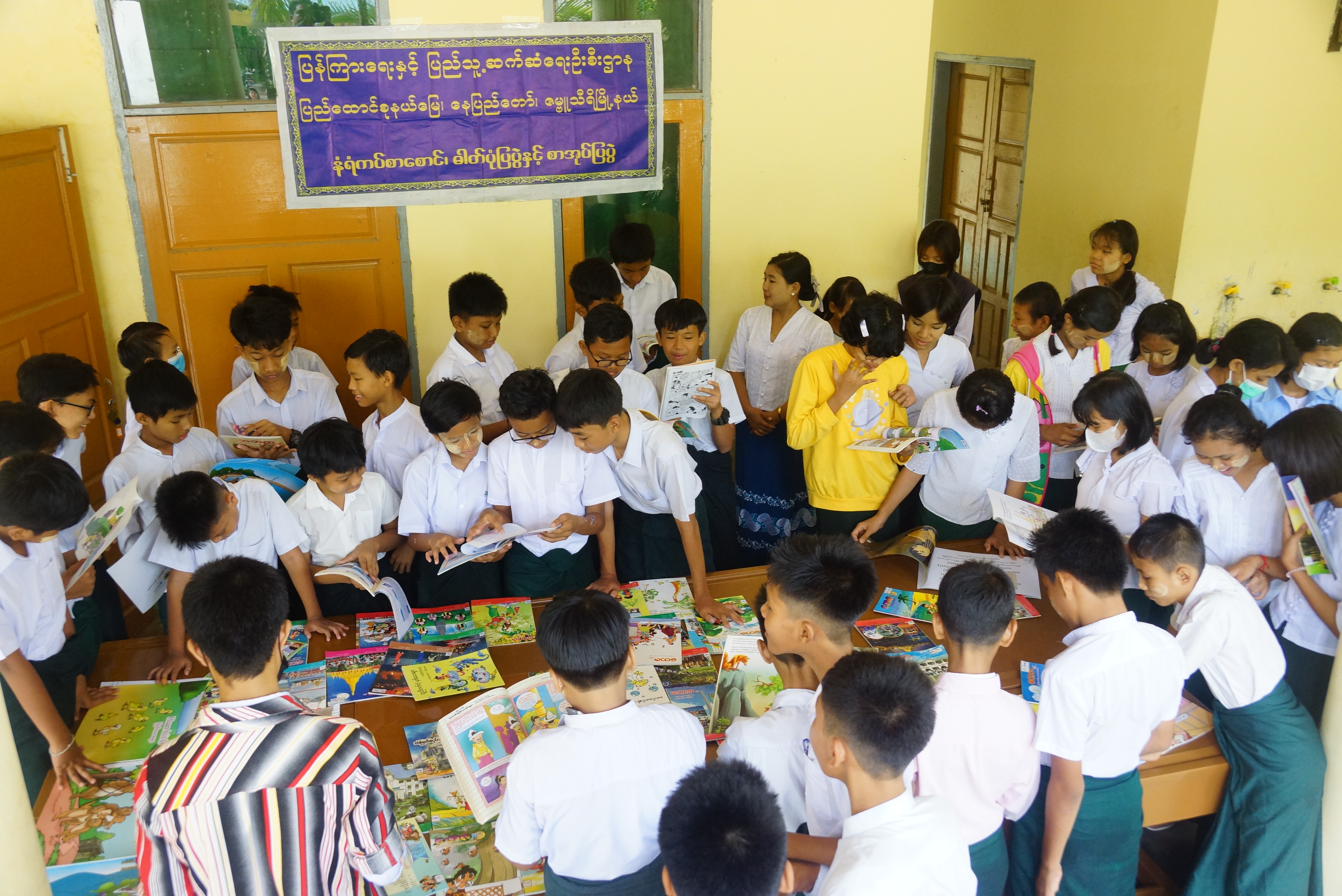 ထို့နောက် အခမ်းအနားသို့ တက်ရောက်လာကြသည့် ကျောင်းသား ကျောင်းသူများက လူငယ်ရေးရာနှင့်သက်ဆိုင်သည့် စာအုပ်/စာစောင်များ၊ အသိပညာပေး နံရံကပ်ပြဘုတ်များကို ကြည့်ရှုလေ့လာခဲ့ကြသည်။