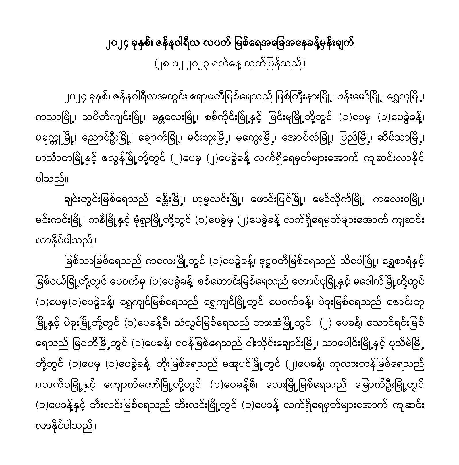 အနေ ခန့်မှန်းချက်များကို (၂၈.၁၂.၂၀၂၃)ရက်နေ့တွင် အောက်ပါအတိုင်း ထုတ်ပြန်ထားပါတယ်…