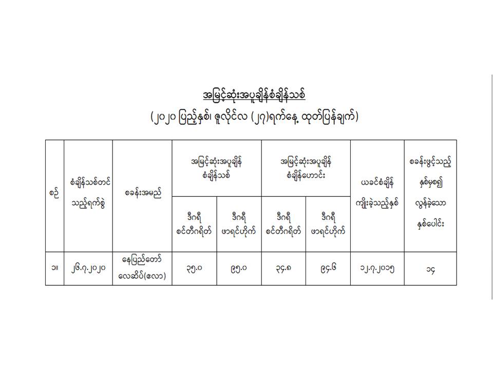 ဇူလိုင်လ၏ အမြင့်ဆုံးအပူချိန်(နေ့အပူချိန်)စံချိန်သစ်