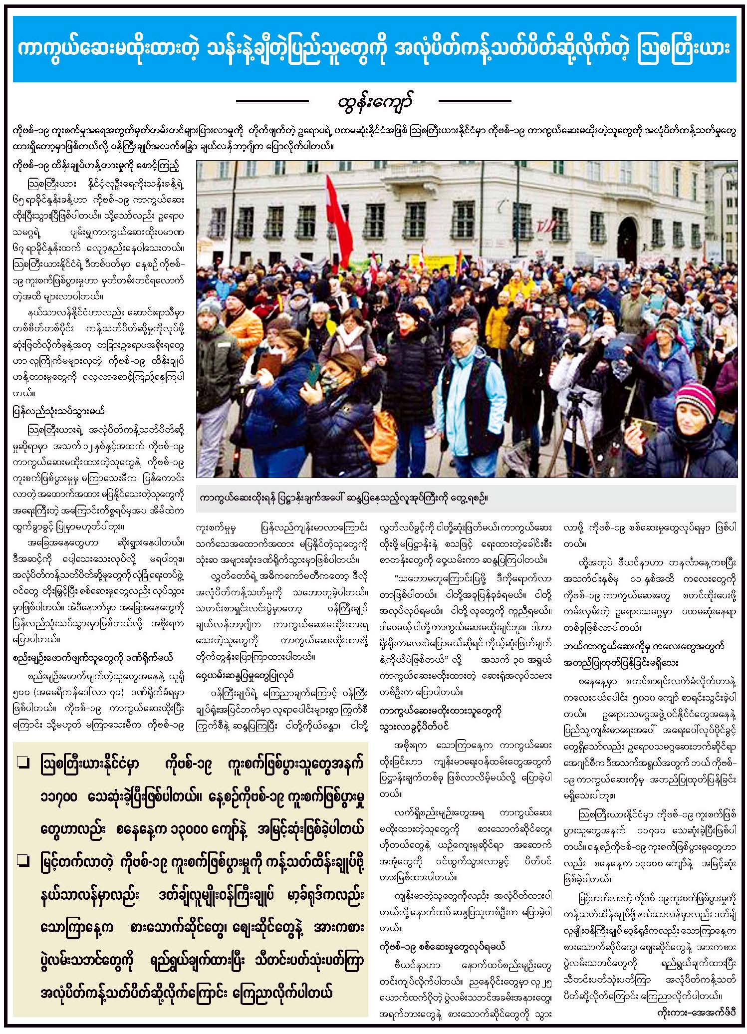 ကာကွယ်ဆေးမထိုးထားတဲ့ သန်းနဲ့ချီတြ့ ပြည်သူတွေကို အလုံပိတ်ကန့်သတ်ပိတ်ဆို့လိုက်တဲ့ ဩစတြီယား