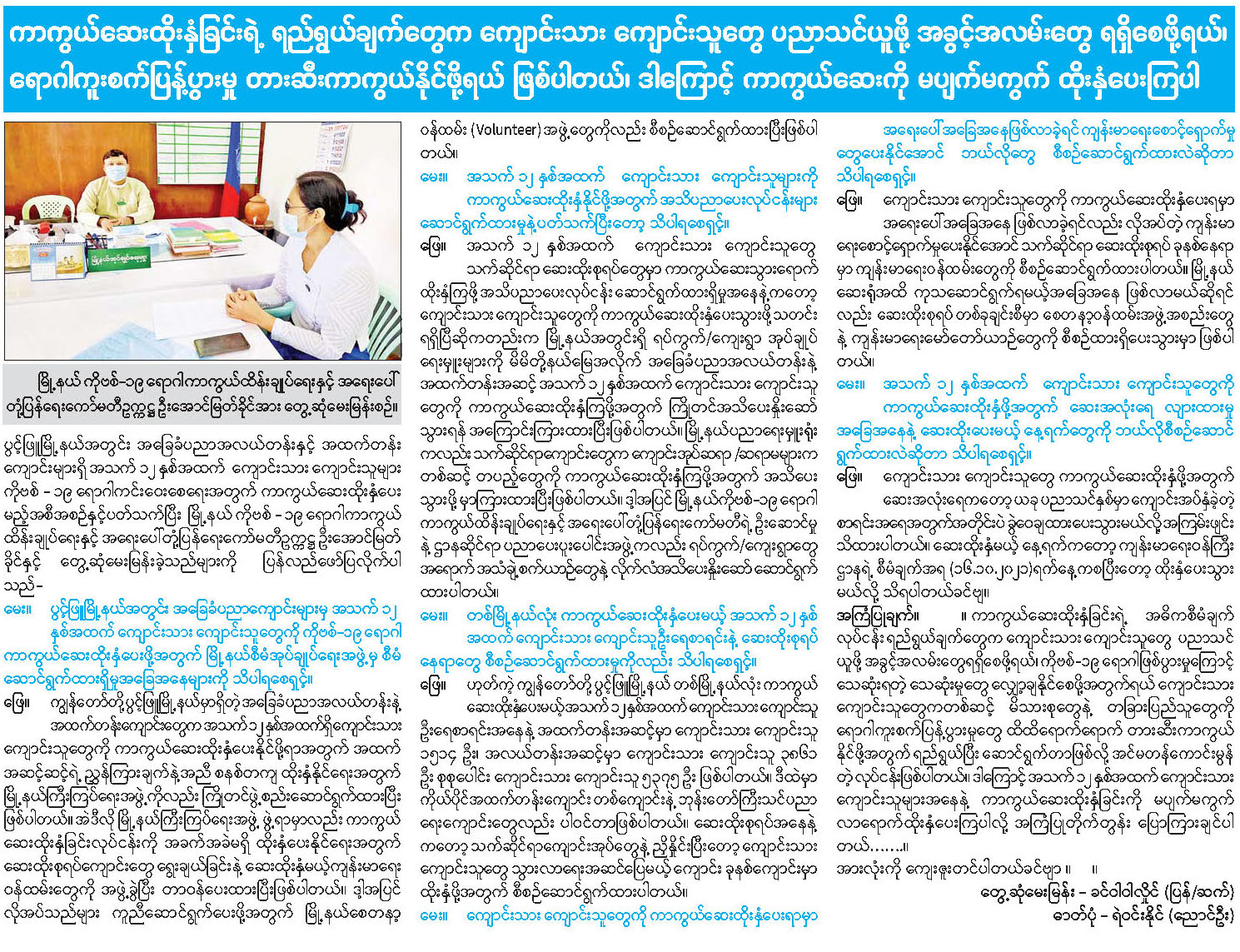 ကာကွယ်ဆေးထိုးနှံခြင်းရဲ့ ရည်ရွယ်ချက်တွေက ကျောင်းသား ကျောင်းသူတွေ ပညာသင်ယူဖို့ အခွင့်အလမ်းတွေ ရရှိစေဖို့ရယ်၊ ရောဂါကူးစက်ပြန့်ပွားမှု တားဆီးကာကွယ်နိုင်ဖို့ရယ် ဖြစ်ပါတယ်၊ ဒါကြောင့် ကာကွယ်ဆေးကို မပျက်မကွက် ထိုးနှံပေးကြပါ